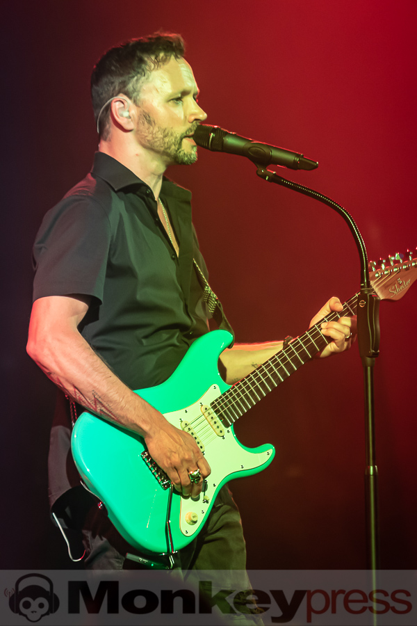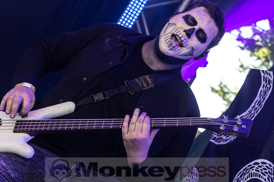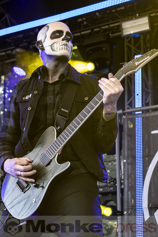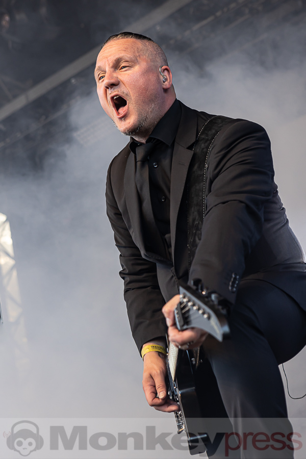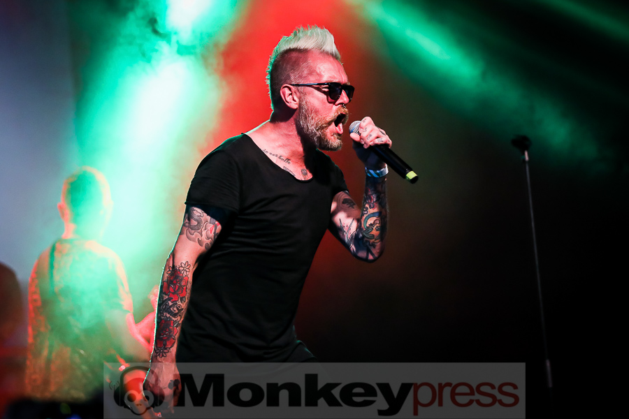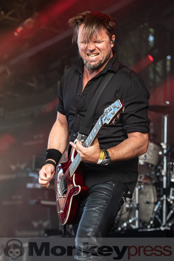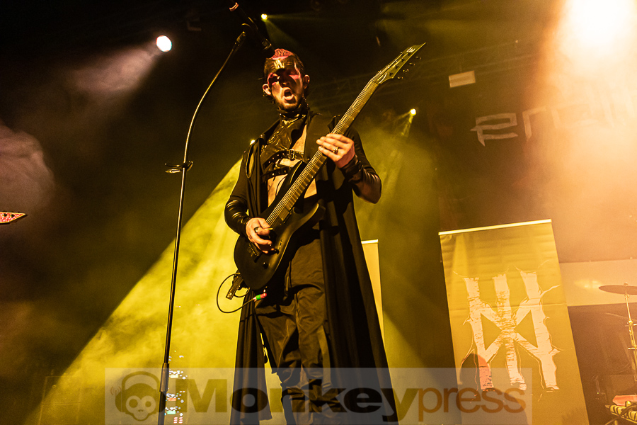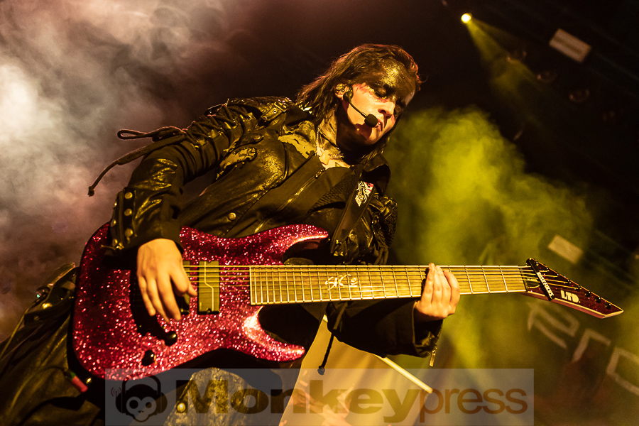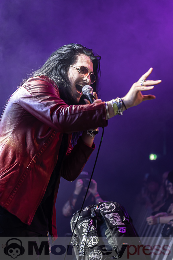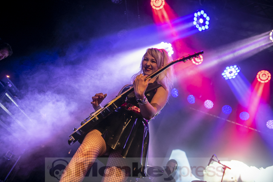 Die Musikfans haben es spürbar vermisst und können, quasi um wieder langsam herangeführt zu werden, auf einem längeren Fußweg von gut 1,5 Kilometern von den kostenlosen Parkplätzen (für zehn Euro ist auch das Parken im RTL Parkhaus gegenüber des Tanzbrunnens möglich) erst einmal vorsichtig Festivalluft schnuppern. Schon um 11 Uhr geht es offiziell auf dem Tanzbrunnen los, der Platz füllt sich zum Auftritt von Chemical Sweet Kid zunächst nur langsam, nach und nach dann aber immer weiter. Das gleiche kann man am Nachmittag ab 14:05 Uhr dann auch vom Theater sagen, denn die hier auftretenden Bands stehen denen auf der Hauptbühne qualitativ in nichts nach und spätestens ab Empathy Test platzt auch das Theater aus allen Nähten – Einlassstopp! Hier ist heute schon früh also Warten angesagt, was für viele schon ernste Befürchtungen für den Abend auslöst: Wird man dem viel erwarteten Auftritt der Theater-Headliner The Birthday Massacre überhaupt beiwohnen können? Bis dahin ist es aber noch eine ganze Weile und es stehen namhafte Acts wie Letzte Instanz. Solar Fake, Mesh , [:SITD:], Frozen Plasma (heute von der wunderbaren Lis van den Akker verstärkt) oder Mono Inc. auf dem Programm. Viele, mehr oder weniger gute, alte Bekannte also, die auch Dank der Zwangspause zumeist lange wieder herbeigesehnt wurden. Solar Fake um Fronter Sven Friedrich geben jedenfalls alles, um weiter in guter Erinnerung zu bleiben und dabei wird Sven heute von Elliott Berlin unterstützt, da Andre Feller leider nicht dabei sein kann. Elliott schlägt sich sehr gut, verleiht dem Auftritt noch zusätzliche Energie und so springt er kurzerhand samt Bass ins Publikum und feiert mit den Fans ordentlich ab. Leider gibt es am heutigen Tag immer wieder Soundprobleme, von denen auch Mesh betroffen sind, besser läuft es am Ende aber für den Headliner: VNV Nation. Und wie üblich braucht Stimmungskanone Ronan Harris nicht viel Zeit, um sein Publikum mitzureissen. Er freut sich sichtlich, lässt sich immer wieder zu Gesprächen verführen, doch das tut der Stimmung natürlich keinen Abbruch, der Tanzbrunnen kocht und natürlich ist auch die Freude groß, als Ronan für Februar 2023 das neue Album Electric Sun ankündigt, das deutlich düsterer ausfallen soll. Ich bin jedenfalls seit langem mal wieder etwas gespannt. Im Theater muss der Headliner ebenfalls zunächst mit technischen Problemen kämpfen, doch mit etwas Verspätung dürfen dann auch endlich The Birthday Massacre abrocken und das tun sie mit einem Querschnitt ihres gesamten Schaffens, gewohnt vielen Grimassen, Liebesbekundungen, harten Klängen und jeder Menge Energie.