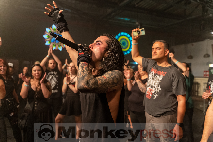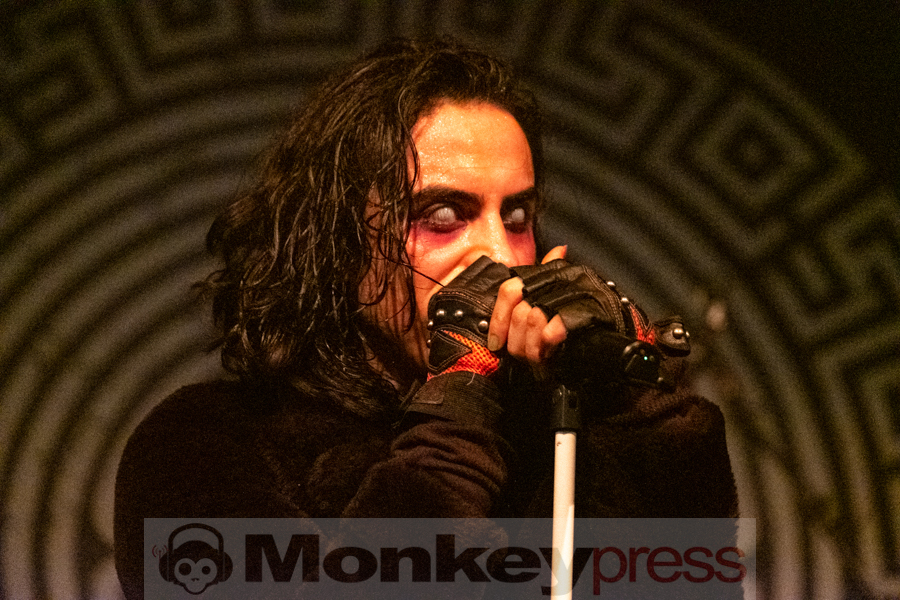 Was an diesem Abend sehr auffällig war: Die weiblichen Fans genossen das Konzert durch und durch. Hier waren es eher mal Männer, die vereinzelt Videos oder Fotos der Band aufnahmen. Zudem stand niemand unbeteiligt an der Theke oder am Rand herum. Auch wenn an diesem Donnerstagabend längst nicht die Kapazitäten des Clubs ausgeschöpft wurden- jeder der Anwesenden war voll dabei und hatte eine ganz wunderbare Zeit. Man lächelte sich untereinander zwischendurch zu und das Hochgefühl, das auf ganz besonderen Konzerten auf die Leute überspringt, war hier klar erkennbar. „We’re gonna go a little bit slower.“ Mother Of Doom begann ganz sanft. Wir lauschten Julians gefühlvoll gesungenen Zeilen. Hier kam der Wirbelwind zur Ruhe und gab sich ganz den seichteren Klängen hin. Als er langsam seine Lederjacke auszog und diese Aktion sogleich von einem promten „Woohoo“-Ruf aus dem Publikum begleitet wurde, konnte er sich ein Grinsen nicht verkneifen. Er ermutigte uns, die Taschenlampen an unseren Handys anzuschalten und es entstand eine ganz ruhige, beseelte Atmosphäre im Raum. Völlig gegensätzlich ging es mit The Curtain Of White Silence weiter. Julians nackter Oberkörper war nun von einem schwarzen Teddymantel bedeckt. Der Song vom neuen Album begann mit verzweifeltem Sprechgesang, der immer dramatischer wurde, bevor uns ein heftiges Drumgewitter ereilte. Hier lastete die Stimmung gefühlt zentnerschwer auf einem. Doch dann gesellten sich überraschende Core Elemente hinzu. Hiermit hat die Band den Gothcore erfunden, den Olli bereits vor Auskopplung der Single ins Gespräch brachte. Wer den Titel zum ersten Mal hört, dem sei gesagt: Belasse es nicht dabei. Dieser Song entfaltet sich nach mehrmaligem Hören immer mehr und live kommt er mit seiner vollen Wucht daher. Das war wirklich eindrucksvoll.