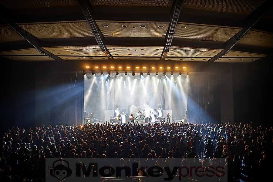 Unto Others, der Opener aus Amerika war stilistisch der Ausreißer des Abends, schließlich wurde hier höflicherweise das Publikum kaum angebrüllt. Die Halle war noch nicht sonderlich gefüllt, als das Set mit Heroin vom aktuellen Album Strength begann. Die Band erzählte, dass man zum ersten Mal in Frankfurt sei und lieferte einen ordentlichen Auftritt ab. Durch die Sonnenbrillen und die Retro-Gitarren hatte man ein wenig den Eindruck, The 69 Eyes hätten plötzlich auf Metal umgeschult, auch ein wenig Sisters of Mercy-Anklänge meinte man nach dem dritten Apfelwein rauszuhören, aber im Gegensatz zu den Briten konnte man Unto Others sogar sehen, da gemäß des hessischen Wetterberichtes keine Nebelbänke aufzogen. Die Extreme Metaller im Publikum wurden nur schwer warm mit der Band, daran konnten auch großartig komponierte Stücke wie Nightfall und Can you hear the rain leider nichts ändern. Ich persönlich war dank meiner Gothic-Gene positiv überrascht und ich hoffe, die Oregoner konnten auch noch ein paar weitere Grenzgänger-Fans musikalisch einfangen.