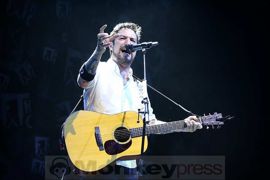Nun waren Frank Turner & The Sleeping Souls als nächster Act angekündigt. Als szenefremder Ignorantling übermittelte ich meinem Kollegen noch die zynische Botschaft: „Schlafende Seelen? Das klingt nicht sonderlich entertaining“. Selten habe ich mich dermaßen gründlich getäuscht. Holy Shit, wer ist dieser Mann? Das, was wir da serviert bekamen, war absolut großartig und hatte Headliner-Qualität! Der Fronter stellte direkt zu Beginn klar: „Ich bin Frank Turner und ich komme aus England. Ich spreche keine Deutsch. Ich habe eine Wette verloren und werde versuchen, heute auf der Bühne nur Deutsch zu sprechen. Seid ihr bereit, Düsseldorf?“. Entgegen des ersten Satzteils sprach er übrigens überraschend gut Deutsch und schaffte es direkt, das Publikum zu vereinnahmen. Mit Eulogy spielte die Band auch einen Song, den ein Fan des Sängers einmal ins Deutsche übersetzt hatte. Natürlich bot es sich hier an, diese textlich abweichende Version zu wählen, was auch geschah. Im hinteren Teil des Sets wurden aber auch Songs des aktuellen Albums FTHC gespielt, so zum Beispiel Haven’t been doing so well und Non Serviam (lat. für ‚Ich werde nicht dienen‘). Musikalisch wurde es mal heiter folkig und mal punkig laut. Eine krude Mischung, die aber die Menge dermaßen in Euphorie versetzte, dass man Billy Talent nur zur Wahl dieses Supports gratulieren kann. „Lasst uns diese Party in Gang bringen!“ war da schon fast eine überflüssige Absichtserklärung. „Keine Panik, es wird alles gut“, lachte Turner zwischendurch nach ein paar weniger harten Songs. „Das ist immer noch eine Punk Rock Show. Unsere Aufgabe ist es, eure Freunde zu werden“. Nun, wenn das bei mir gelang, der mit diesen Genres so wenig am Hut hat, dann erst recht mit den etwas in die Jahre gekommenen Rock-Kids vor Ort. Zwischendurch stellte er auch seinen Mistreiter Benjamin Lloyd vor, als dieser von der Gitarre zu einer „elektrischen Mandoline“ wechselte.