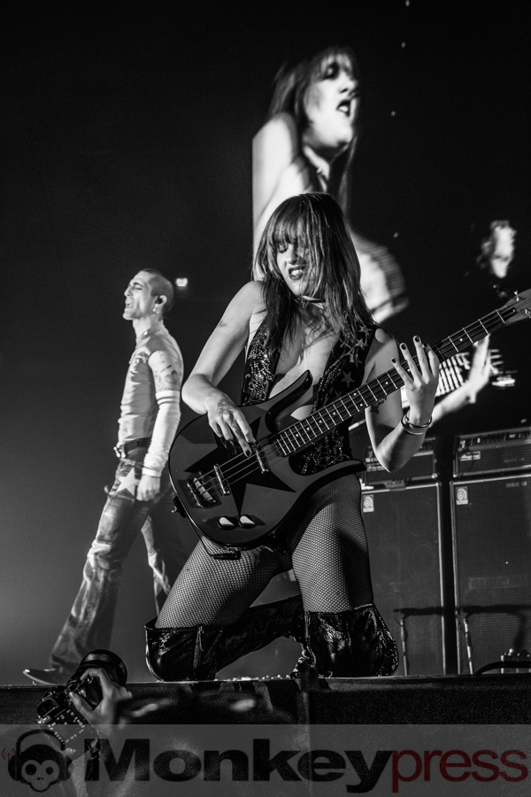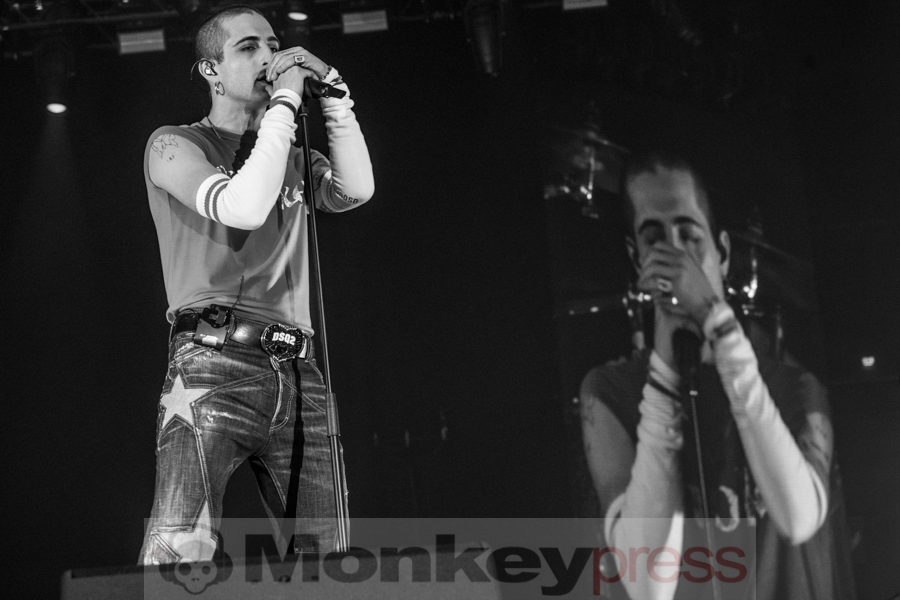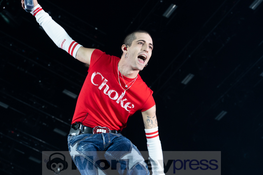 In ihrer aktuellen Single Gossip rechnete die Band mit dem American Dream ab „This place is a circus, you just see the surface. They cover shit under the rug„. Zu ihrem ESC Hit kniete sich Victoria mit ihrem Bass auf den Boden und machte mit ihren aufreizenden Bewegungen und ihrem niedlichen Grinsen Jungs wie auch Mädels verrückt. Damiano ergriff das Wort: „We’re really happy to be here. If you’re not, go fuck yourself!“ Seine Menge hatte er voll im Griff. Im roten Lichtschein schwang er sich sexy am Mikroständer herab. Jubelschreie folgten auf dem Fuße. Das romantisch angehauchte Coraline entfachte ein riesiges Lichtermeer. Ihr Song Bla Bla Bla provozierte mit rotzefrechen Lyrics. Dazu begab sich der Sänger in den Bühnengraben und kam seinen Fans ganz nahe. Einer junge Dame schenkte er gar einen Handkuss. Ohne große Vorwarnung ließ er sich dann rücklings auf die erhobenen Hände seiner Fans nieder, um sich durch die Menge reichen zu lassen. Gitarrist Thomas Raggi begeisterte zu In Nome Del Padre mit einem herrlich wilden Solo. Voller Inbrunst schmetterte Damiano die italienischen Lyrics daher, in dem Tempo klangen sie fast schon wie ein Rap.