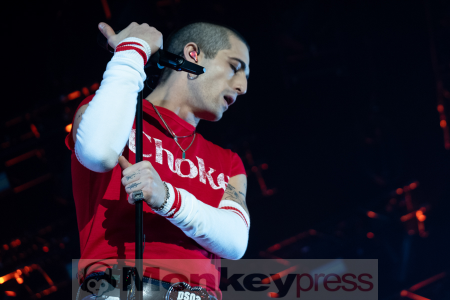 Grande Finale mit I Wanna Be Your Slave. Oh ja – nochmal! Victoria legte sich auf den Boden und Thomas lehnte sich rückwärts gegen ihren emporgestreckten Stiefel. Den ganzen Abend über lag immer wieder ein gewisses Knistern in der Luft. Damiano flüsterte seine Worte ins Mikro, bevor er noch einmal seine Stimme erhob: „Ok, now I need all of you to get down on your knees. All of you! Oh my god, I love it. I coun’t ‚til four. Are you with me? I can’t hear you! Are you fucking with me? 4, 3, 2, 1 jump, jump, jump, jump!“ Und es fehlte nicht viel, um die Arena zum Beben zu bringen. Im letzten Augenblick geschah es dann – Damiano entledigte sich seiner Jeans und stand für wenige Augenblicke lediglich in seiner engen, hellblauen Shorts auf der Bühne. Genüsslich ließ er die Blicke auf sich wirken, bevor er seines Weges in den Backstage Bereich zog. Seine Mitmusiker kosteten noch die letzten Töne aus, eher auch sie verschwanden. Ethan warf seine Drumsticks in die Menge und nach einer zweistündigen Spielzeit entließen uns Måneskin in die Nacht zurück.