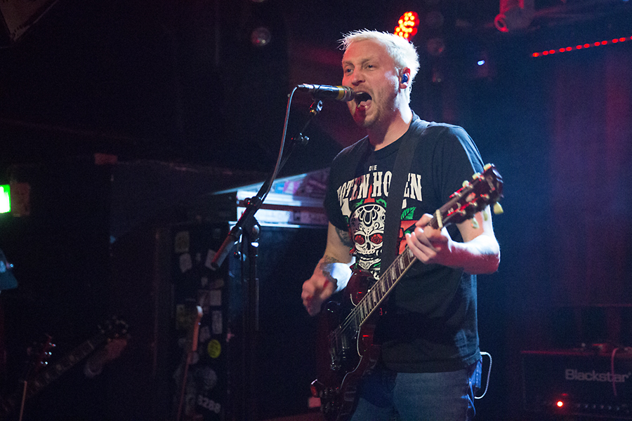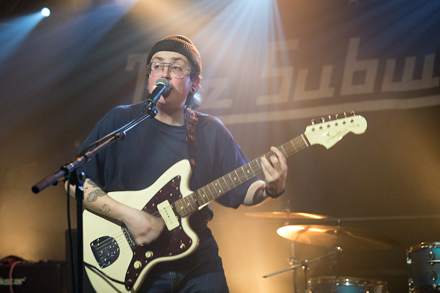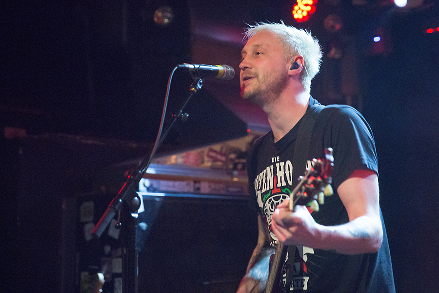 Doch bevor es so weit ist, gehört der Vorband Get Jealous die Bühne. Und wie sie das tun. Die Bühne reicht dem niederländischen Trio in der klassischen Besetzung (Bass, Gitarre, Drums) nicht. Sänger Otto nimmt das ganze Artheater ein, lässt sich von Fans auf den Schultern tragen und weiß auch sonst gut Partystimmung zu verbreiten. Otto ist ursprünglich eine Frau, fühlt sich jedoch im falschen Körper und fasst immer mehr Bewusstsein, so aufzutreten, wie er möchte. Da eh mehr geschrien als gesungen wird, ist die Stimmlage hier eher zweitrangig. Get Jealous ist eine Band, die man sich merken sollte. Sie ist unter anderem für das Green-Juice-Festival im Sommer in Bonn gebucht. Da werden sie mit ihrer Mischung aus Punk und Riot-Pop sicher Anklang finden und ihre Fanbase erweitern. Selten eine Supportband gesehen, die so abgeht und sich aber auch feiern lassen kann.