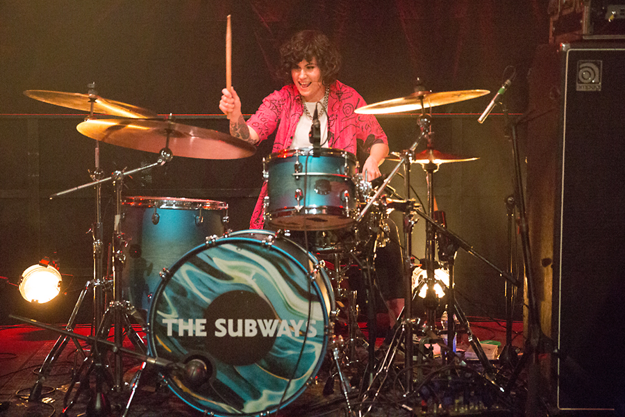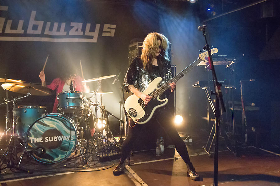 Umbau mit kurzer Dauer sind The Subways auf der Bühne und schaffen es zunächst das Stimmungslevel hochzuhalten. Frontmann und Sänger Billy Lunn schafft sich in Köln direkt Freunde, weil er sagt, es gebe heute drei gute Sachen: „The Subways spielen wieder in Europa, The Subways spielen wieder in Deutschland und The Subways spielen wieder in Köln!“ Da ist ihm frenetischer Jubel natürlich sicher. Der Sound ist laut und druckvoll und alle drei Instrumente aber auch die Gesangsstimmen sind gut zu hören. Am Schlagzeug gab es bei The Subways in letzter Zeit einen Wechsel und niemand Geringeres als Camille Phillips (The Ramonas) sitzt nun dahinter. Dieser hält sich aber dezent zurück und überlässt Lunn und Charlotte Cooper das Rampenlicht. Und diese nutzen und genießen es. Cooper headbangt mit wuchtiger Haarmähne immer noch wie früher und Lunn heizt die Fans immer wieder mit „Let’s go crazy!“ an. Und die Fans? Die machen es schon, aber ein Moshpit oder Stage Diving ergibt sich daraus nicht, sondern es ist eher ein Springen auf der Stelle.