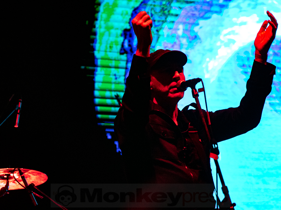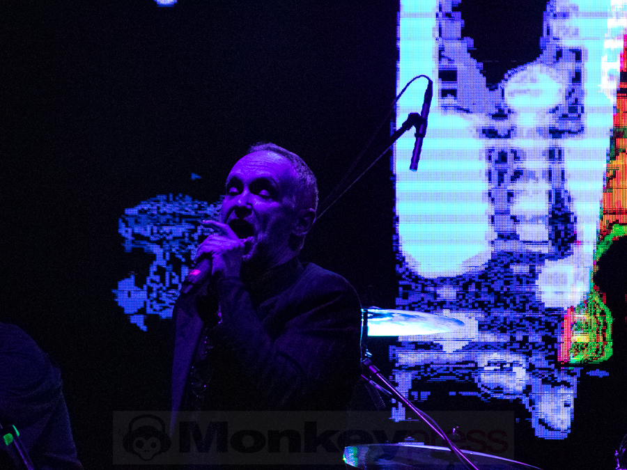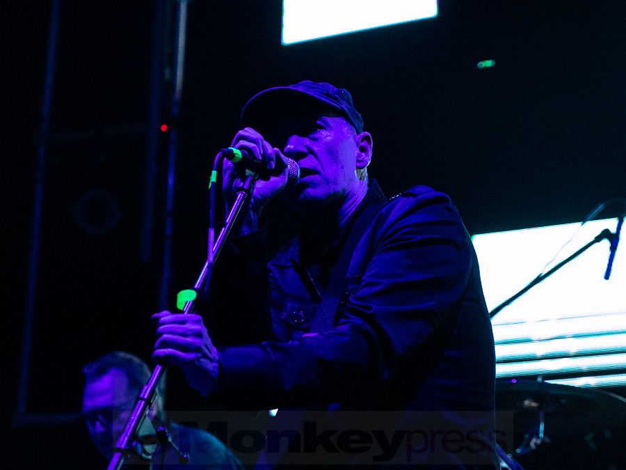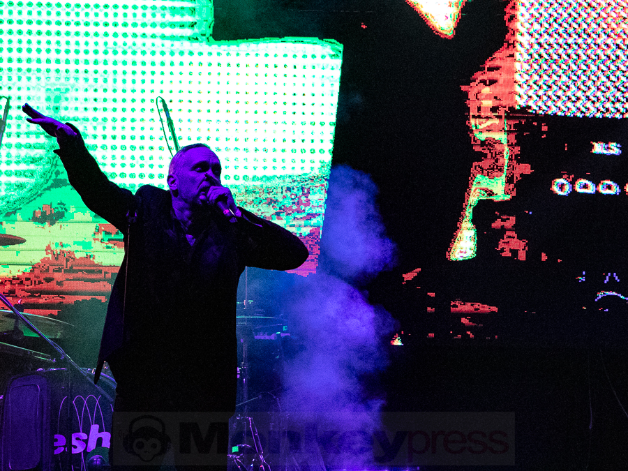Als nach dem Set von Gulvøss das Saallicht heller gedreht wurde, war ich überrascht, wie sich die Halle mittlerweile doch gefüllt hatte. Beborn Beton haben sich ja nun nach 35 Jahren in der Szene auch einen gewissen Ruf erspielt. Ihre Platten waren immer erfolgreich und ihre Tracks beschallen so manchen Floor. Für mich waren sie aber eine Livepremiere. Und so war ich, anhand des neuen aktuellen Albums Darkness Falls Again, doch überrascht, dass die Herren ja nunmal auch schon in meinem Alter sind und Sänger Stefan Netschio etwas aus der Form geraten ist. Aber, ich war echt positiv überrascht, wieviel Stimmung er von der Bühne machte und wie verdammt gut er doch singen kann. So gab es tatsächlich auch einen guten Querschnitt durch die letzten 35 Jahre Beborn Beton und das Publikum kam bereits nach den ersten Tracks in gute Partylaune. Schnell hatte man den Fauxpas vergessen, dass die Technik den Jungs übel mitspielte und somit das Intro ausfallen musste. Nach 45 Minuten fand ihr Set leider ein schnelles Ende. Der Zeitplan drückte und obwohl die ersten Gäste nach Zugaben verlangten, mussten Beborn Beton Platz machen für die Altmeister des Wave von…