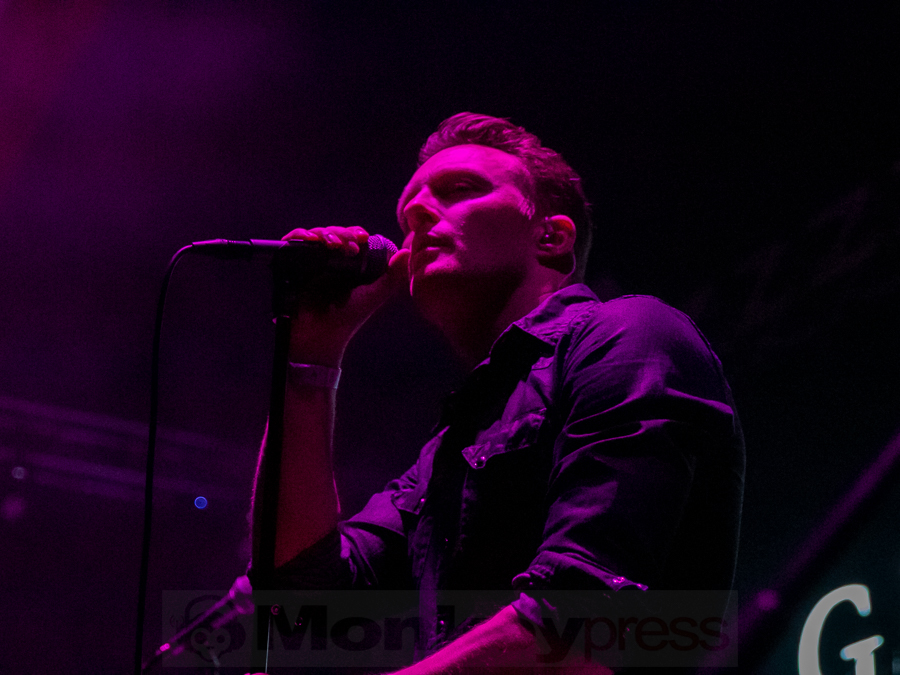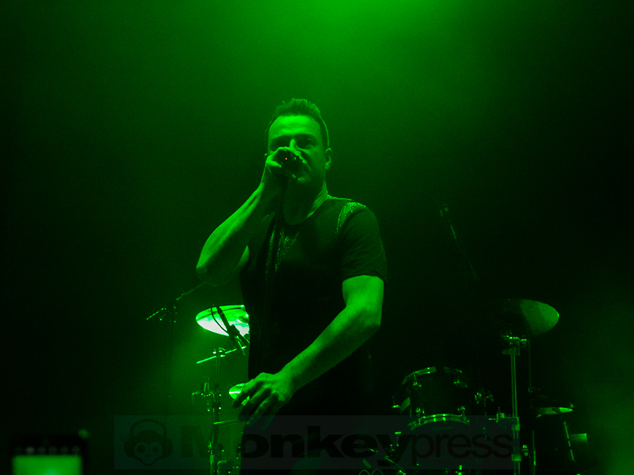 Der LED-Screen im Bühnenhintergrund flimmere und dunkle Töne wurden angeschlagen. Jetzt wurde es also härter. Girls Under Glass waren stilistisch eine Ausnahme an diesem Abend. Ihr Waverock klang teilweise mystisch, teilweise bedrohlich. Der Screen im Bühnenhintergrund zeigte apokalyptische Bilder und Sänger und Gitarrist Volker Zacharias strahlte eine kühle Coolness aus und begann das Set gleich mit einem Track vom kommenden Album Eiskalt, welches im Juni erscheint. Die neuen Tracks im Set fügten sich gut in die Diskografie ein und Volker machte einen verdammt guten Job. Wiedermal war ich überrascht, wie verdammt gut Girls Under Glass an diesem Abend klangen. Der Tonmann versteht was von seinem Handwerk.