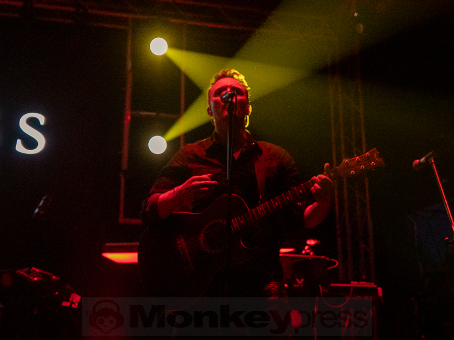 Pünktlich um 18.30 Uhr eröffnete Gulvøss aus Berlin den Abend. Ich war überrascht, wie gut der Klang in der mittlerweile gut gefüllten Halle war. Begleitet von einem Gitarristen und einem Drummer führte Sven Wittmiß das Publikum in ein sehr ruhiges harmonisches Set. Eher gedämpftes Licht unterstrich die sanften Klänge und ja, der Mann kann verdammt gut singen. Für mich eine Art intelligenter Elektropop. Er wird mit seinen Liedern keine Revolution anführen, aber seine Art Musik zu machen, hat mich wirklich beeindruckt.