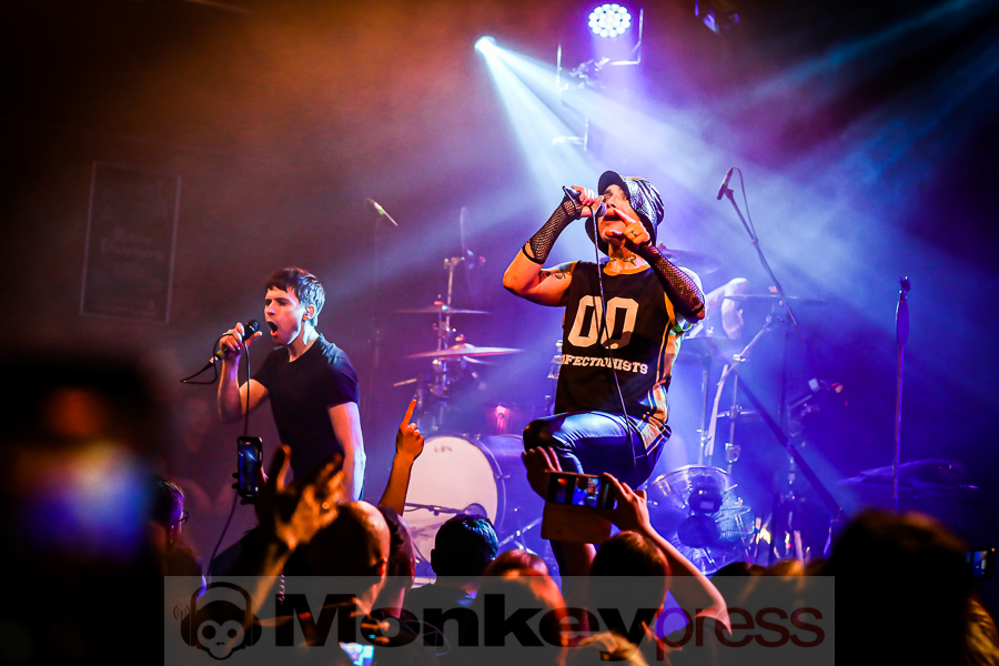 Er ließ es sich natürlich nicht nehmen, den Song gemeinsam mit Daniel zu performen. Mit einem herzlichen Empfang wurde Isaac erneut begrüßt. Fröhlich ging die Sause also mit Save Myself weiter. Für den letzten Titel Love Like Lies wurde Isaac noch mit einer Trommel ausgestattet. Getragen von einer Welle der Euphorie feierten wir alle das große Finale. Isaac trommelte beherzt mit, Constance bezirzte die ersten Reihen, räkelte sich auf dem Boden herum und präsentierte aus dem Nichts einen perfekten Spagat. Joe packte sich die mobile Trommel und reckte diese den Fans entgegen. Stolz hielten sie das Schlaginstrument in die Höhe, eher er eine ordentliche Ladung Wasser hinaufkippte. Gemeinsam mit Isaac schlug er beherzt darauf ein. Fette Beats stachelten die Menge an, noch einmal lautstarke „Hey, Hey, Hey“-Rufe zu äußern. Konzerte von Aesthetic Perfection enden immer, wenn es am Schönsten ist. Leider war dies nun tatsächlich der Fall. Glücklich verabschiedete sich die Band noch einmal von ihren Fans. Alle Musiker des Tages ließen sich auch noch am Merchstand blicken. Da Joe im Laufe des Abends etliche Drumsticks von sich geworfen hat, konnten auch viele Fans ein hölzernes Andenken mit nach Hause nehmen. Eine junge Frau nahm jedoch noch ein weiteres Souvenir mit, hatte sie doch ein Stick unglücklich an der Stirn erwischt. Dank der fürsorglichen Helfer konnte sie diese aber ganz schnell kühlen und somit blieb ein Hörnchen erfreulicherweise aus. Zum Schluss konnte man sich noch auf der gelungenen Aftershowparty vergnügen, ehe am Folgetag der zweite Streich des Festivals folgen sollte – und dieser hielt einige Überraschungen für uns bereit…