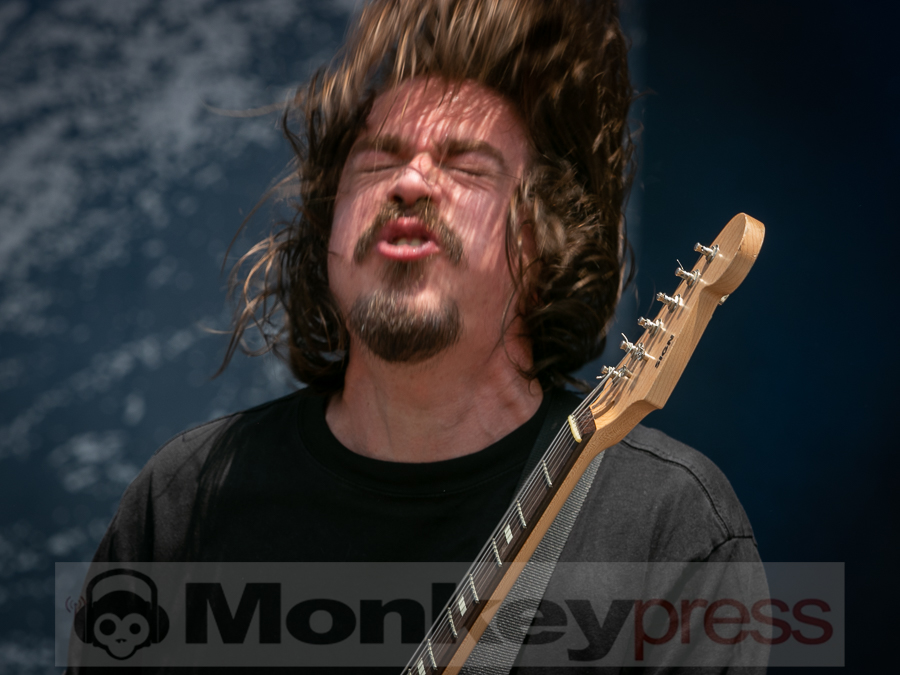 Unsere erste Band ist an diesem Tag: Fjørt aus Aachen. Ich muss zugeben, ich hatte gedacht, die drei Jungs kommen eher aus Skandinavien als aus Deutschland. Ihr Hardcore Rock trifft mich genau da, wo eigentlich die Futterlucke ist und ich werde von der Energie weggeblasen, ebenso wie die gut 5.000 Zuschauer an der Forest Stage. Laut, schnell und unerbärmlich brettern Chris hell und Daniel Frings in die Saiten. Ihr relativ kurzes Set von acht Stücken macht klar, dass der heutige Tag kein Spaziergang werden wird.