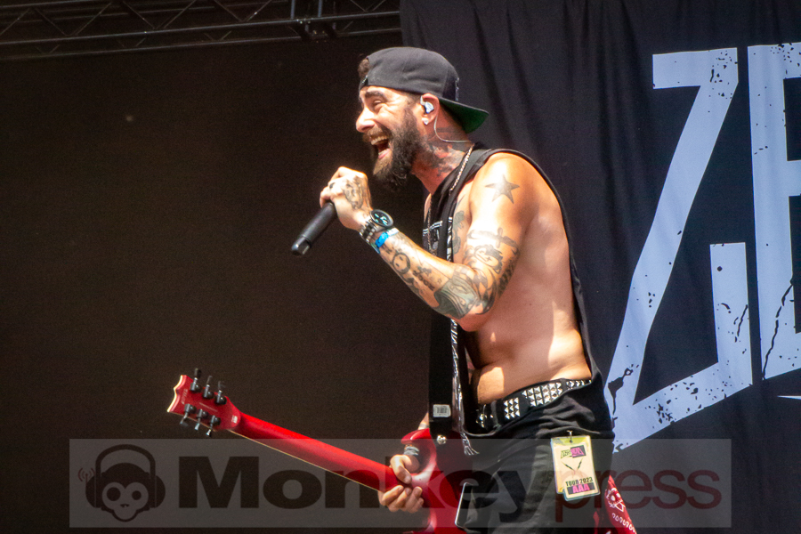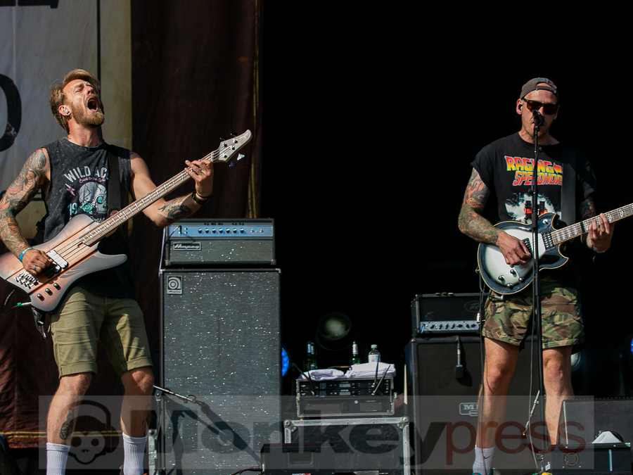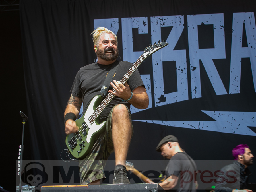 Vom Hardcore Rock zum Punkrock ist es nur ein kleiner Weg. Direkt im Anschluss von Fjørt entern die Punkrocker von Zebrahead aus Kalifornien die Stage um ihren Crossover-Mix aus Punk, Rap und Metal über den immer heißer werdenden Platz zu brettern. Es ist viel Bewegung auf der Bühne und die Crowd wird animiert, den Pogo in der staubigen Nachmittagssonne zu fröhnen. Die Jungs machen Spaß. Auch wenn man bereits jetzt an den Rand der Kräfte gelangt. Derweil wird auf dem Platz bereits eine Wasserfontaine installiert, wo sich die Festivalbesucher abkühlen können. Mobile Eisverkäufer wittern das Geschäft ihres Lebens. Und darüber peitschen die Gitarren von Zebrahead.