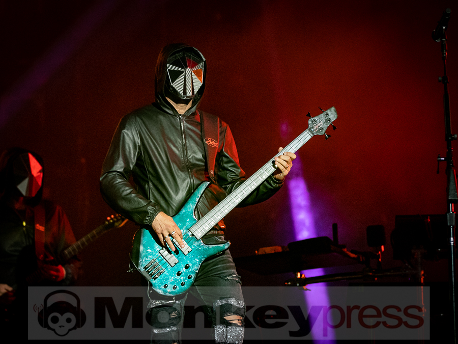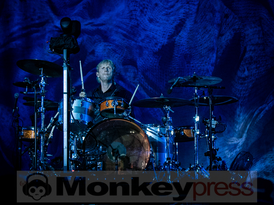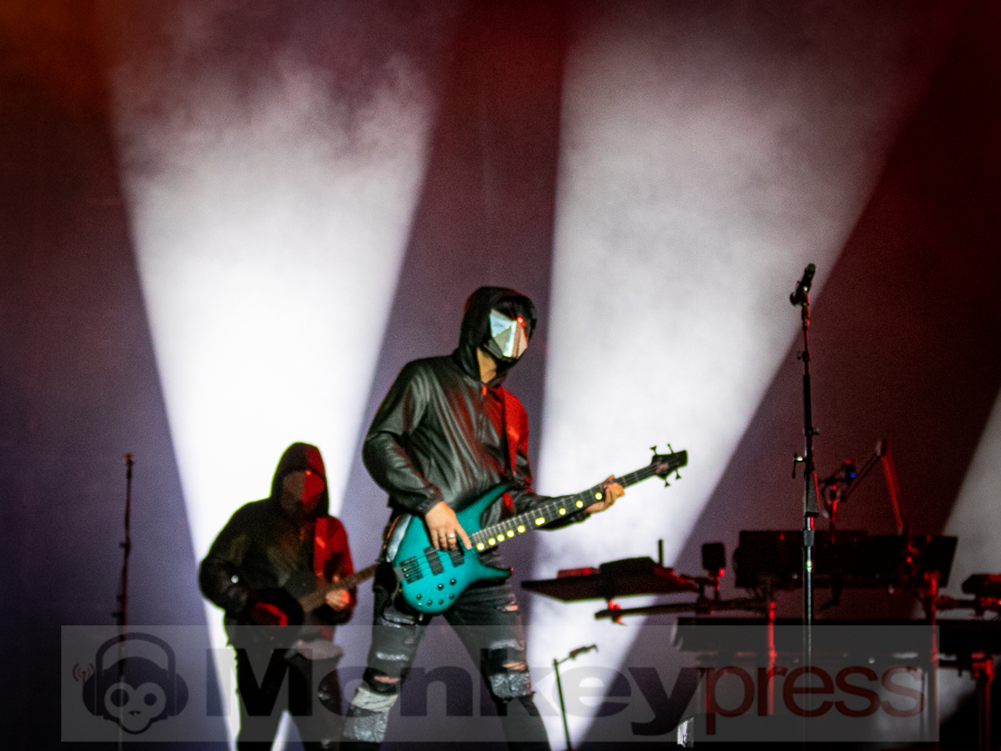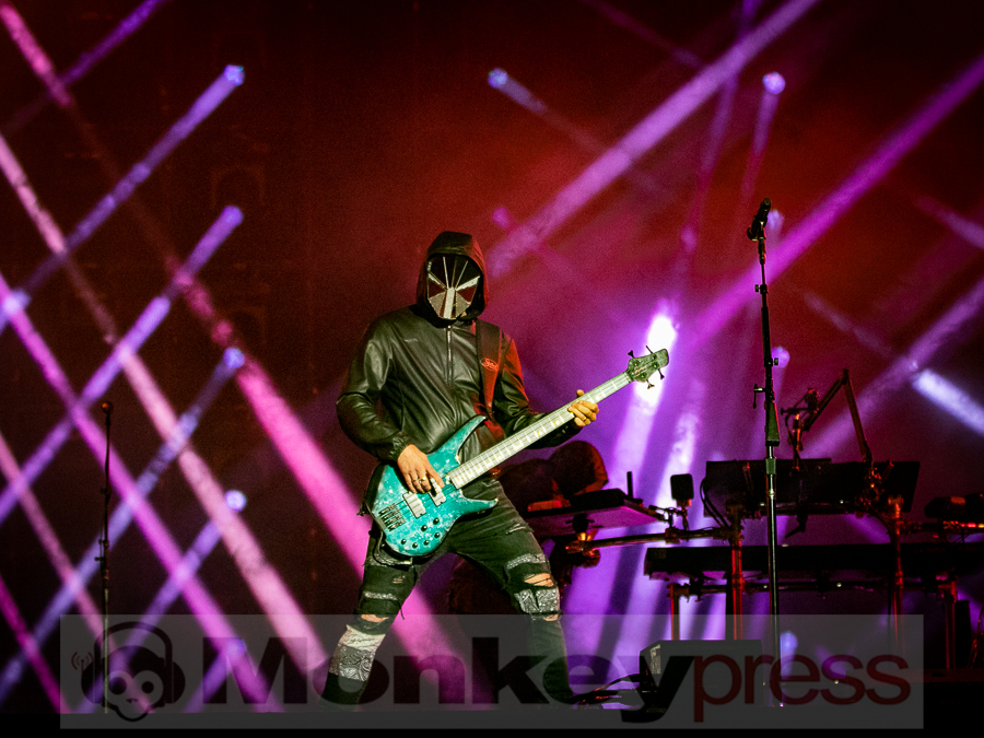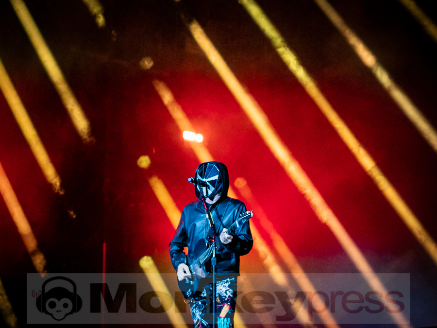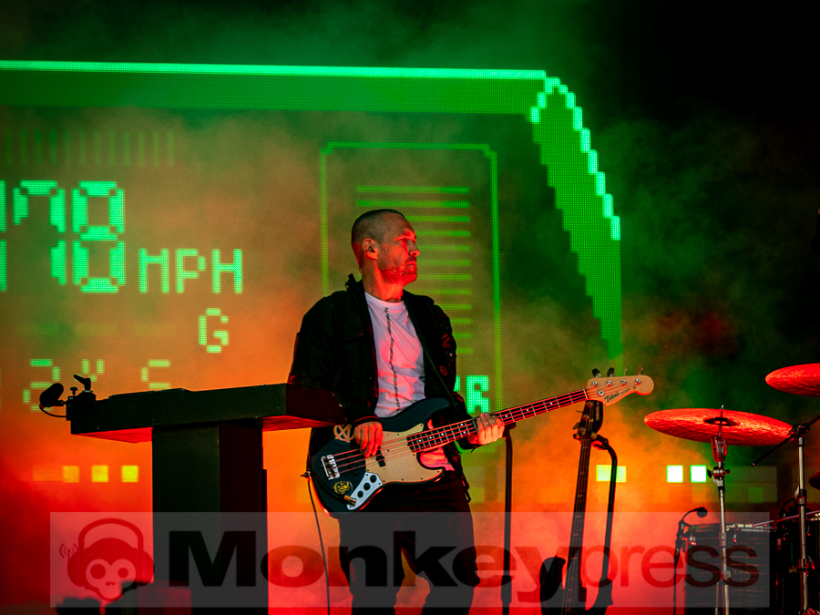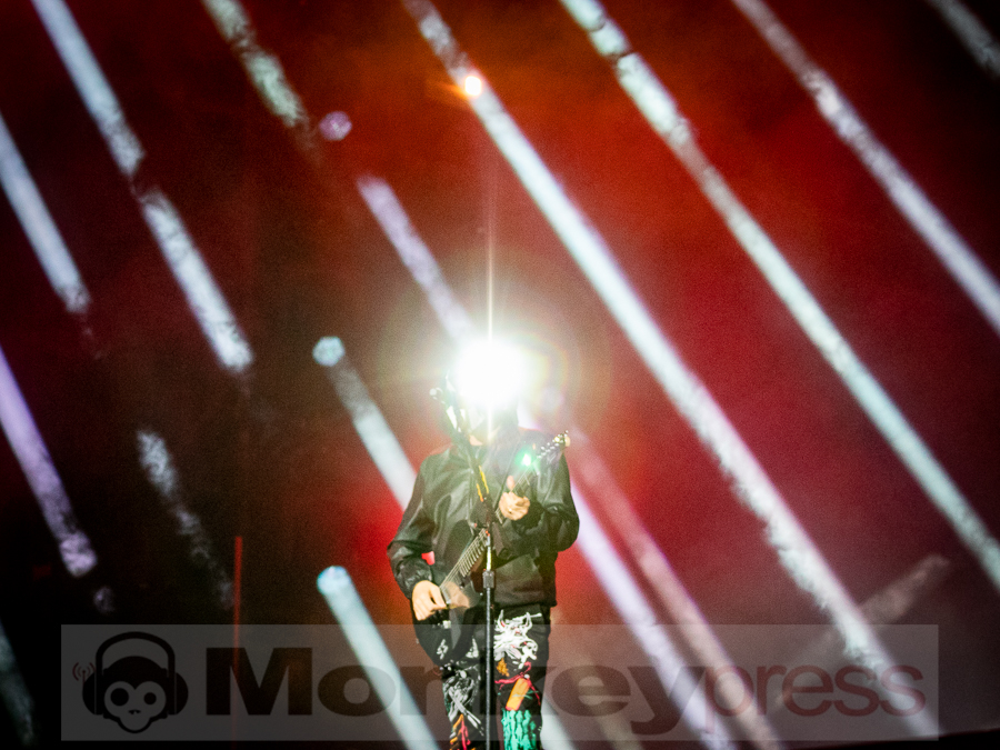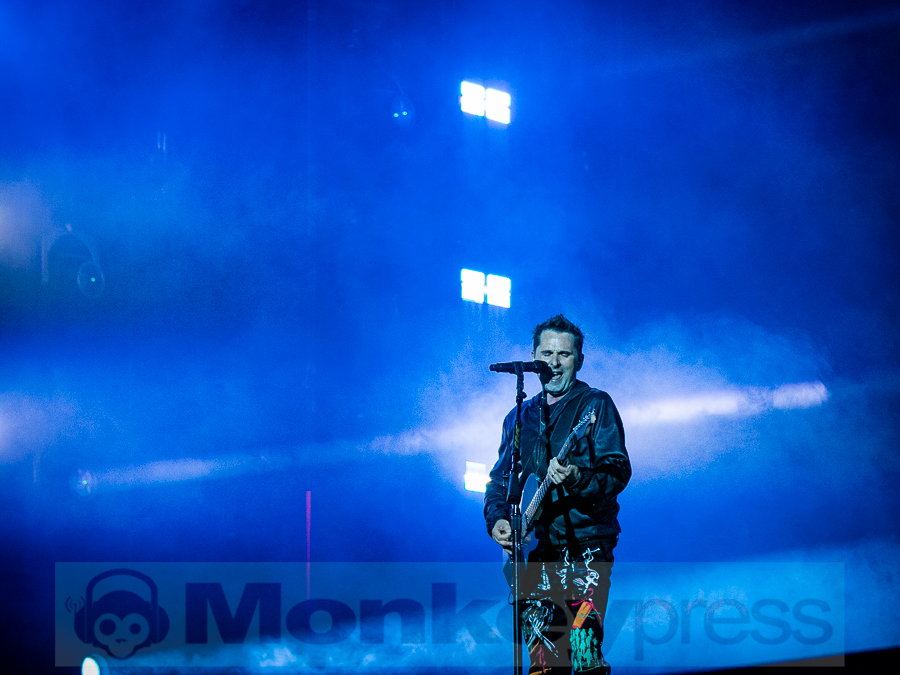 Um 23.00 Uhr sollte dann eigentlich für mich das Highlight des Festivals kommen. Muse einmal so aus der Nähe vor der Linse, das hat schon was. Das Intro Chant war beängstigend. Feuer auf der Muse-Bühne hätte ich nun nicht erwartet und als die drei nebst Begleitmusikern mit futuristischen Spiegelmasken auf der Bühne auftauchten, war es für mich dann doch etwas befremdlich. Natürlich, Matt Bellamy ist ein begnadeter Sänger, der was weiß ich, für Töne aus sich rauspressen kann, aber die Maske war für mich zu verschlossen, um so singen zu können. Da war doch nicht etwa ein Playback im Spiel? Egal, Maske runter und ab geht die Post. Muse spielen fast das komplette Tour-Set und lassen so gut wie keinen Hit aus. Es ist erstaunlich, wie viele Hits diese Band bereits hat. Da könnte man mittlerweile gerne auf gewisse Einspieler wie dem Drill Sergeant oder Kill or Be Killed verzichten und dafür noch ein oder zwei Songs mehr spielen. Muse liefern ab. Wie immer. Bellamy entert seinen eigenen Steg ins Publikum, den an diesem Tag keine andere Band nutzen durfte, Er quält seine Gitarre bis zum äußersten und auch Basser Chris Wolstenholme spielt mit einer stoischen Gleichgültigkeit oder Coolness wie immer. Mir fehlt bei Muse mittlerweile die Überraschung. Das Besondere. Was auf ihren Platten bereits vor ein paar Jahren angefangen hat, setzt sich mittlerweile auf der Bühne fort. Trotzdem haben Muse den Titel Highlight des Tages mehr als verdient. Ihre Aura verleiht dem ganzen etwas Besonderes. Und das kann man ihnen nicht nehmen.