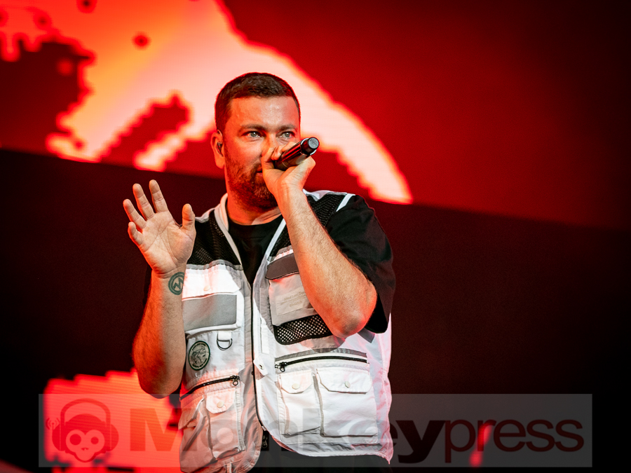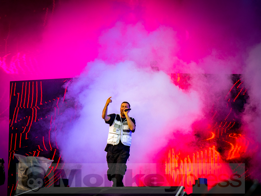 Nach einer gewissen Zeit des Erholens bekam ich alter Mann also eine Lehrstunde in Sachen Rap. Habe ich mich mit dem Genre aus Gründen nicht beschäftigt, sollte jetzt also Marteria, den ich bisher nur vom Hörensagen kannte auf der Forest Stage auftreten. Das Intro, der Vorhang, der Nebel – Auf dicke Hose machen konnte er schon mal. Kommt da jetzt ein Gangsterrapper? Nein, nicht wirklich. Nachdem ich mich an den fetten Bass gewöhnt hatte konnte ich tatsächlich Musik erkennen. Die Bassdrum die über das Gelände donnerte hätte aus einer Armee von 3er BMW schallen können und wäre doch nichts gegen den fetten klaren Sound gewesen, der da aus den Boxen ballerte. Marteria sieht für mich gar nicht so böse aus, wie er mir geschildert wurde. Nee, der Mann lächelte und lachte. Er grüßte einzelne Fans in der Menge und feierte sich selbst als der King im Block. Die Texte mag ich nicht immer analysieren. Aber die Crowd folgt ihm und er ist ihr Lehrmeister. Wenn ich den Auftritt irgendwie zusammen fassen soll dann mit dem Wort „amtlich!“