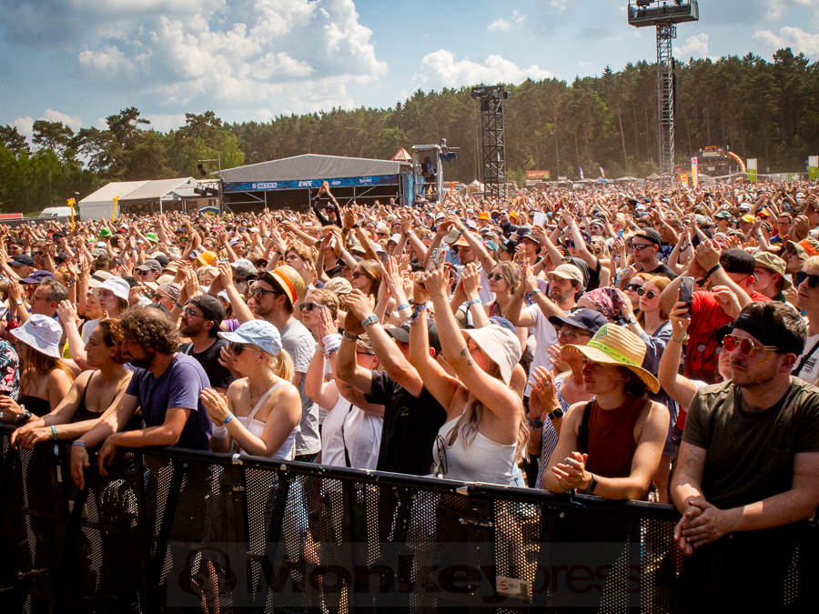 Auf der Hauptbühne haben gerade Madsen ihr Set gestartet, als aus dem starken Wind ein Sturm entsteht. Aus wenigen Regentropfen geht in Windeseile ein Starkregen über dem Platz runter, der Schlussendlich in einem Hagelschauer endet. Wir, die nicht auf dem Weg zu Madsen oder den The Luminers waren, fühlten uns im Pressebereich regelrecht eingesperrt. Das Zelt, wo sich unser Bereich im Backstage befand, wurde arg geschüttelt und im Backstage sind einige Pavillons auf Reisen gegangen. Viele, sehr viele Festivalbesucher machten sich Sorgen, ob die Zelte auf den Campingplätzen alles überstanden haben. Wer Nass bis zum Schlüpfer war, wurde fortan in den tollen Merchartikeln des Festivals gesehen. Auch eine Möglichkeit von PR dafür. 😉