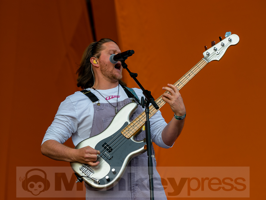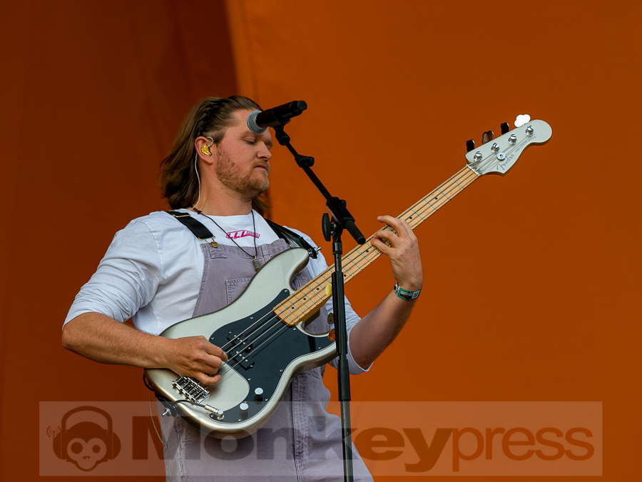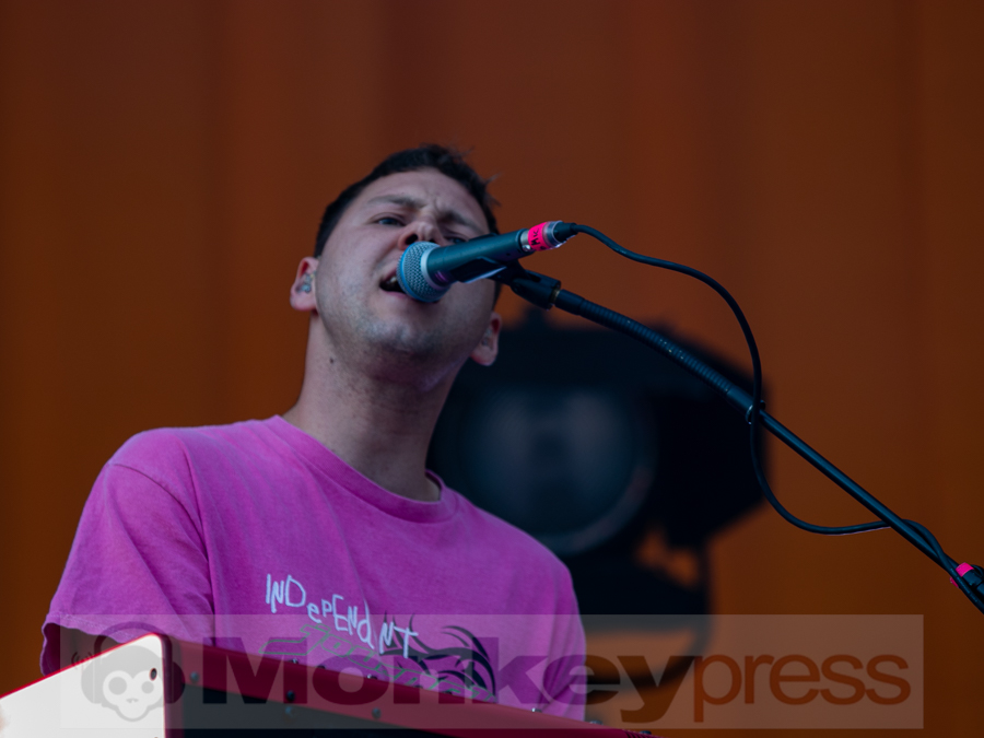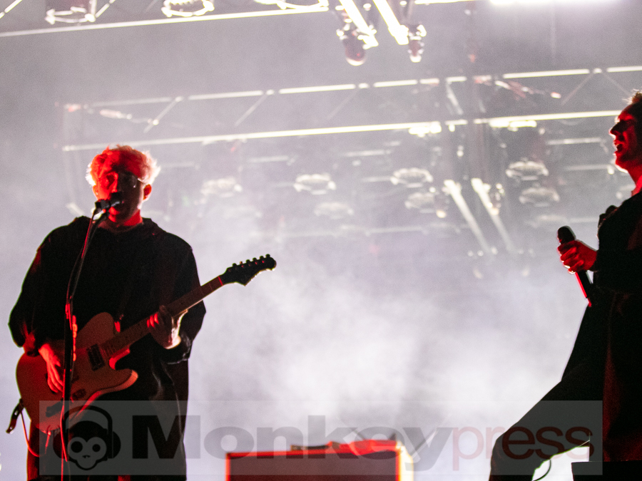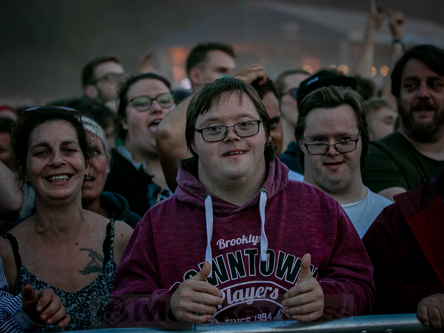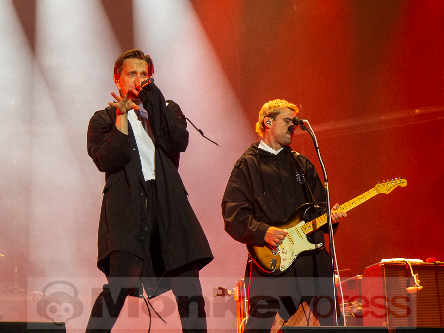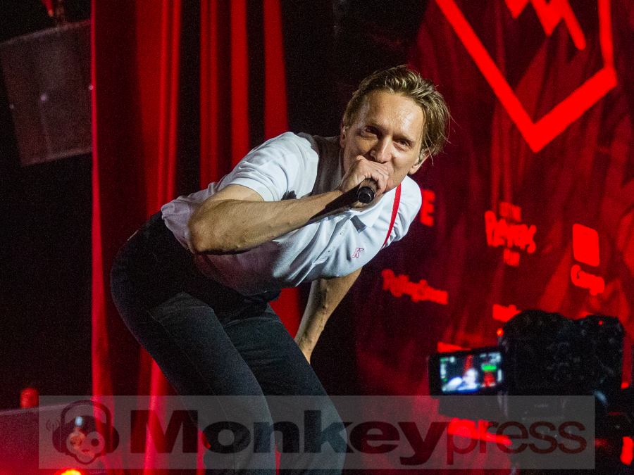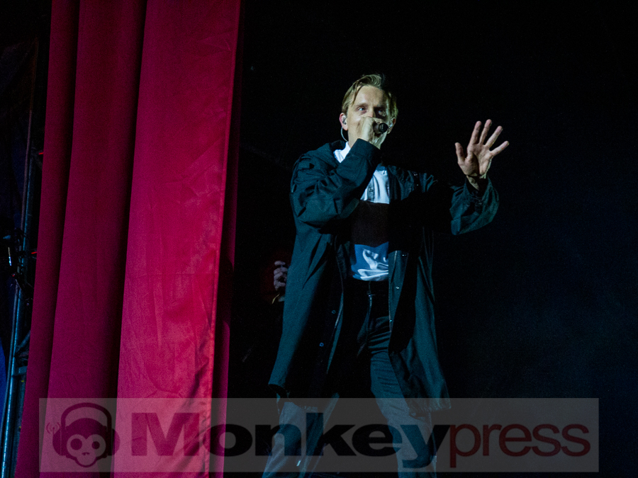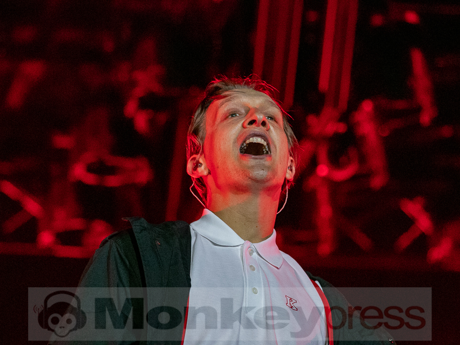 Doch schnell rüber zur River Stage. Ein großer roter Samtvorhang hat schon etwas Feierliches. Eigentlich stehe ich ja überhaupt nicht auf deutschen Sprechgesang, gepaart mit Indierock. Und wenn dann auch noch Kraftklub dahintersteht, würde ich am liebsten gehen. Bis zu diesem Abend konnte ich mit Felix Kummer absolut nichts anfangen. Die Musik ist okay aber der Sprechgesang von Kummer? Nee, lass mal. Aber irgendetwas ist an diesem Abend passiert. Die Bühne bietet einen Anblick der eher einer Fabrikhalle in einem Terminator-Film gleicht. Das Licht kommt von hinten in rot und es ist schwer, die einzelnen Gestalten auf der Bühne zu erfassen. Natürlich wird auch dieses Set genau durch getaktet sein aber Kraftklub kommen für mich überraschend frisch und spontan rüber. Egal ob Kummer bei Fahr mit mir (4×4) – ohne Bill Kaulitz, sich beim Tanzen eigentlich die Arme ausrenken müsste, oder das obligatorische Bad in der Menge. Kraftklub begeistern die Fans zur späten Stunde und sogar ich bin fast schon traurig, dass der erste Festivaltag für mich so schnell zu Ende geht.
