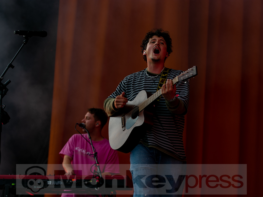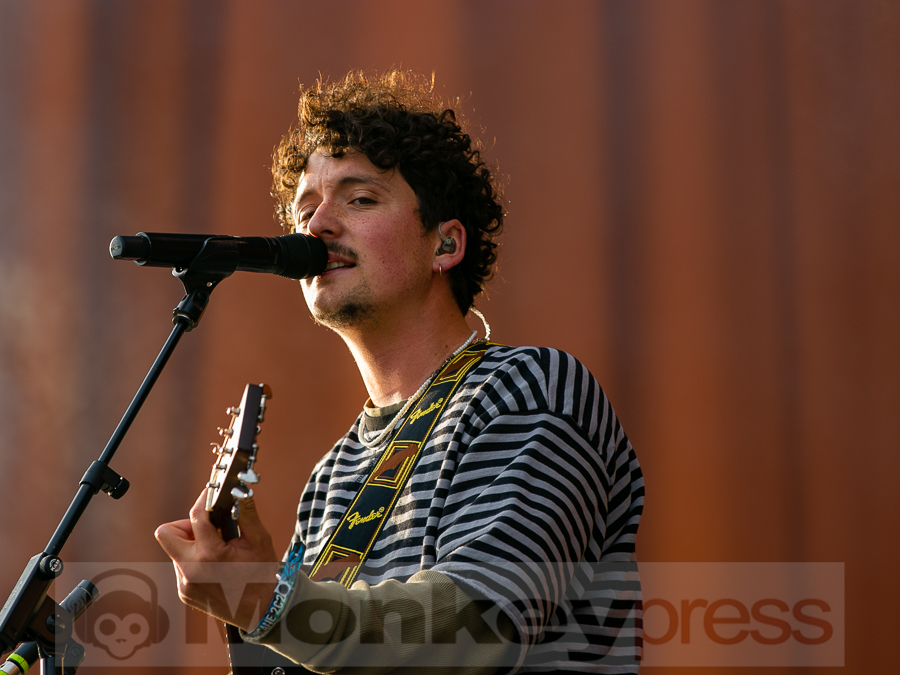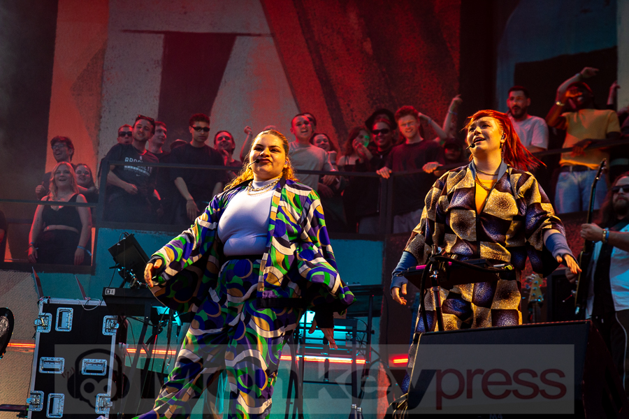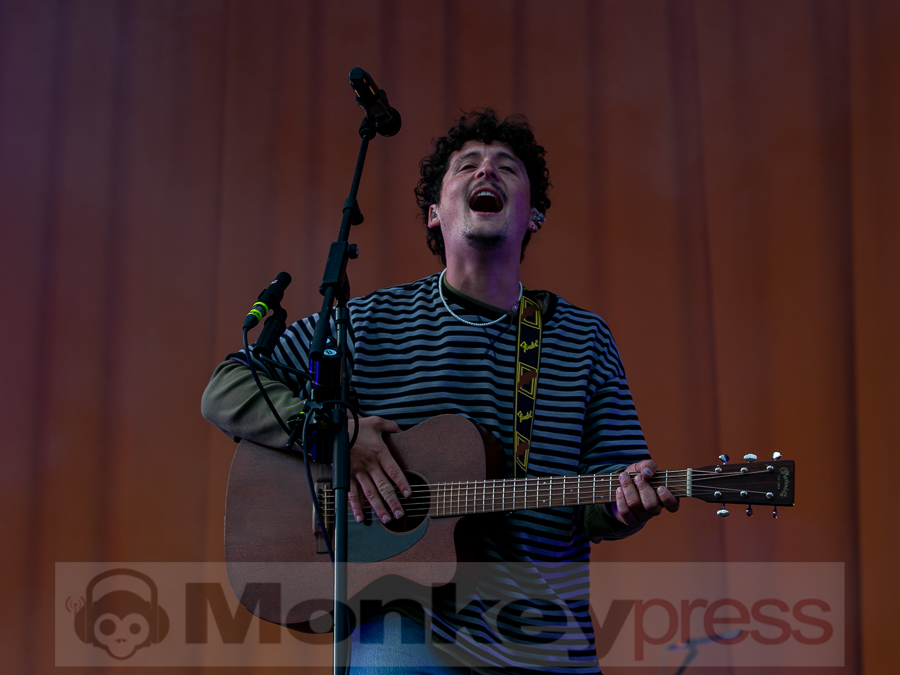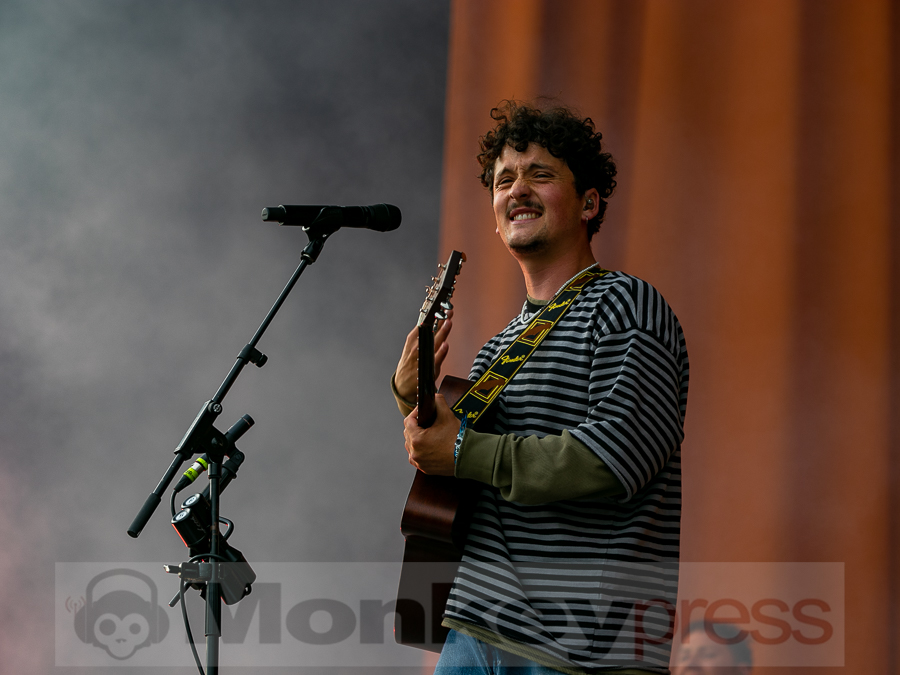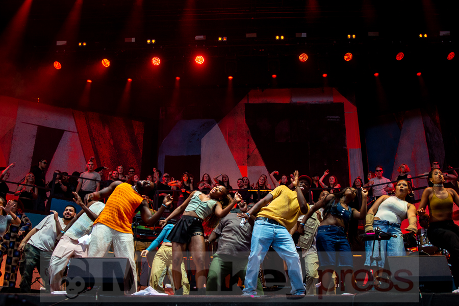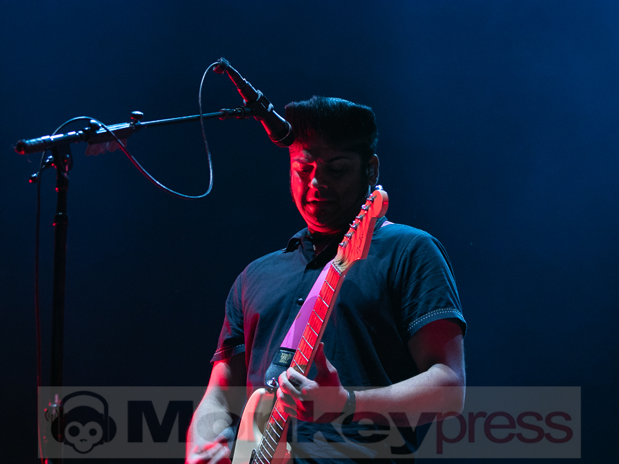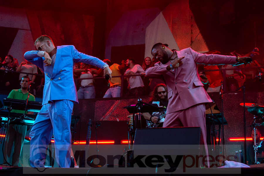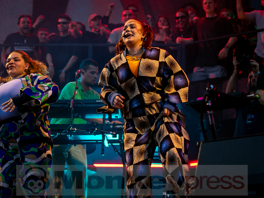 Doch schnell rüber zur River Stage. Ein großer roter Samtvorhang hat schon etwas Feierliches. Eigentlich stehe ich ja überhaupt nicht auf deutschen Sprechgesang, gepaart mit Indierock. Und wenn dann auch noch Kraftklub dahintersteht, würde ich am liebsten gehen. Bis zu diesem Abend konnte ich mit Felix Kummer absolut nichts anfangen. Die Musik ist okay aber der Sprechgesang von Kummer? Nee, lass mal. Aber irgendetwas ist an diesem Abend passiert. Die Bühne bietet einen Anblick der eher einer Fabrikhalle in einem Terminator-Film gleicht. Das Licht kommt von hinten in rot und es ist schwer, die einzelnen Gestalten auf der Bühne zu erfassen. Natürlich wird auch dieses Set genau durch getaktet sein aber Kraftklub kommen für mich überraschend frisch und spontan rüber. Egal ob Kummer bei Fahr mit mir (4×4) – ohne Bill Kaulitz, sich beim Tanzen eigentlich die Arme ausrenken müsste, oder das obligatorische Bad in der Menge. Kraftklub begeistern die Fans zur späten Stunde und sogar ich bin fast schon traurig, dass der erste Festivaltag für mich so schnell zu Ende geht.