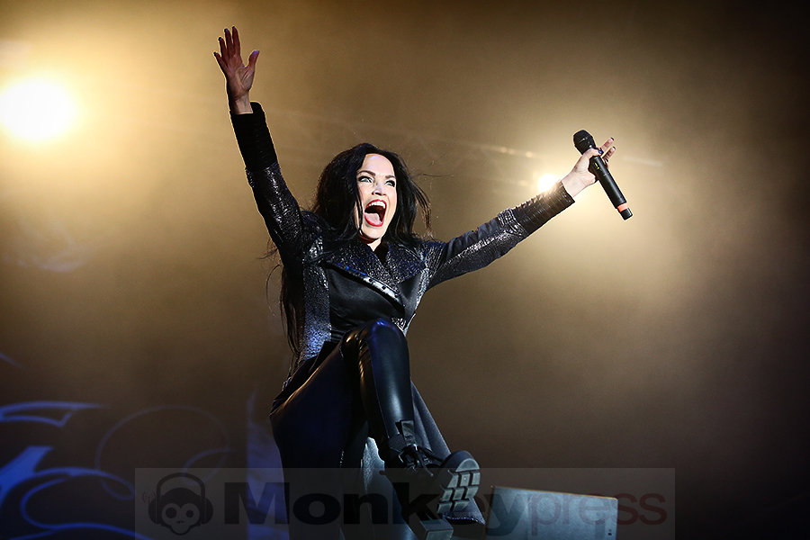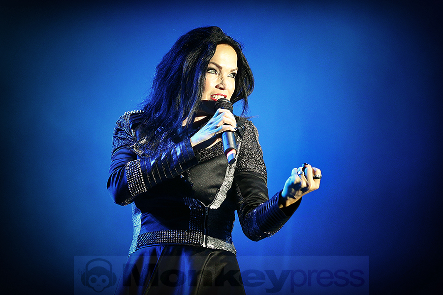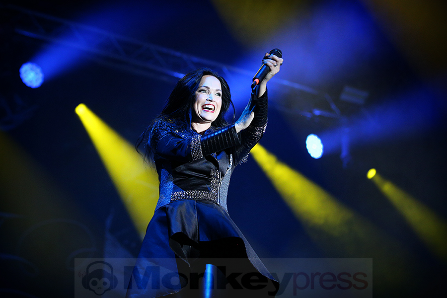 Die Headlinerin des Abends nahm mit ihrer Präsenz und Aura direkt beim Betreten die ganze Bühne ein, wie man es von ihr auch seit Jahren gewohnt ist. Tarja – wie viel Bedeutung, Emotion und Verehrung man doch in zwei Silben pressen kann. Längst hat sie sich aus dem Schatten von Nightwish gelöst und wirft mittlerweile einen eigenen, großen solchen. Die Finnin versuchte sich nach dem Opener Eye of the storm direkt an einer deutschen Begrüßung und schlug sich ganz leidlich. „It’s incredible to see you again people! We’ll show you some rock tonight. Let’s go!“. Und das war keine leere Ansage. Vielen Anwesenden stand schlicht der Mund offen, als die energetische Sängerin zu Demons in you (Im Original ein Duett mit Alissa White-Gluz) dermaßen abging… Die Frau kennt kein Alter. Sie sieht nicht nur genauso zeitlos blendend aus wie vor 20 Jahren, sie bringt heutzutage sogar noch mehr Energie auf die Bühne als damals. Keine Sekunde steht sie still, sondern läuft beschwingt von links nach rechts, fordert lachend den Support des Publikums ein, singt und verbiegt sich dazu in zig Posen, dass es einfach nur eine Freude ist.
