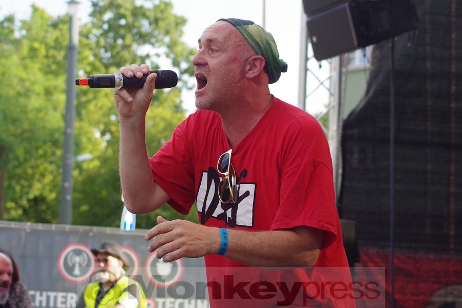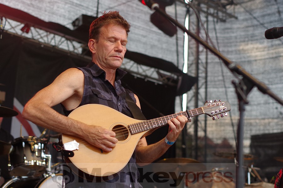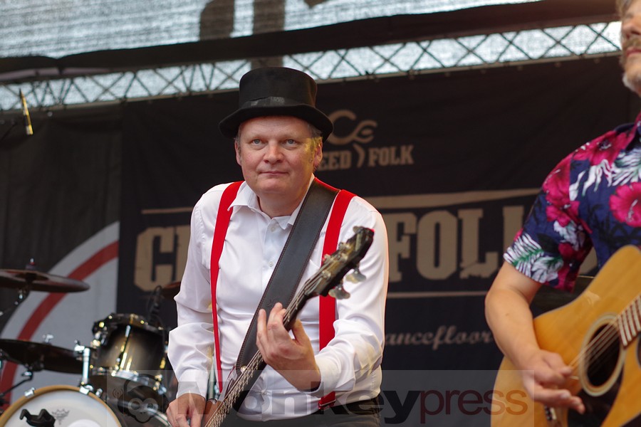 Früh sollte es dann auch losgehen. Mit den letzten Bissen des Abendessens im anliegenden Bob’s Fast and Slow Food ertönte bereits Musik und man stellte fest: Nein, das kommt nicht vom Band, das ist live. Also gegen 18:30 Uhr schnell die Rechnung bezahlt und rüber zur Bühne, wo die Cellarfolks loslegten. Mit Elementen aus Speedfolk und Folk Rock sorgten sie für gute Unterhaltung und holten das Publikum bereits zu früher Stunde gut ab. Apropos „Stunde“: Ein Merkmal des Sommers am Kiez zeigte sich auch hier wieder, denn auch die Opener der jeweiligen Abende dürfen ein nahezu vollwertiges Set spielen. So konnten die Cellarfolks auf über einer Stunde ihr Können beweisen und man kann getrost davon ausgehen, dass sie sich in dieser Zeit so einige neue Hörer erspielt haben.