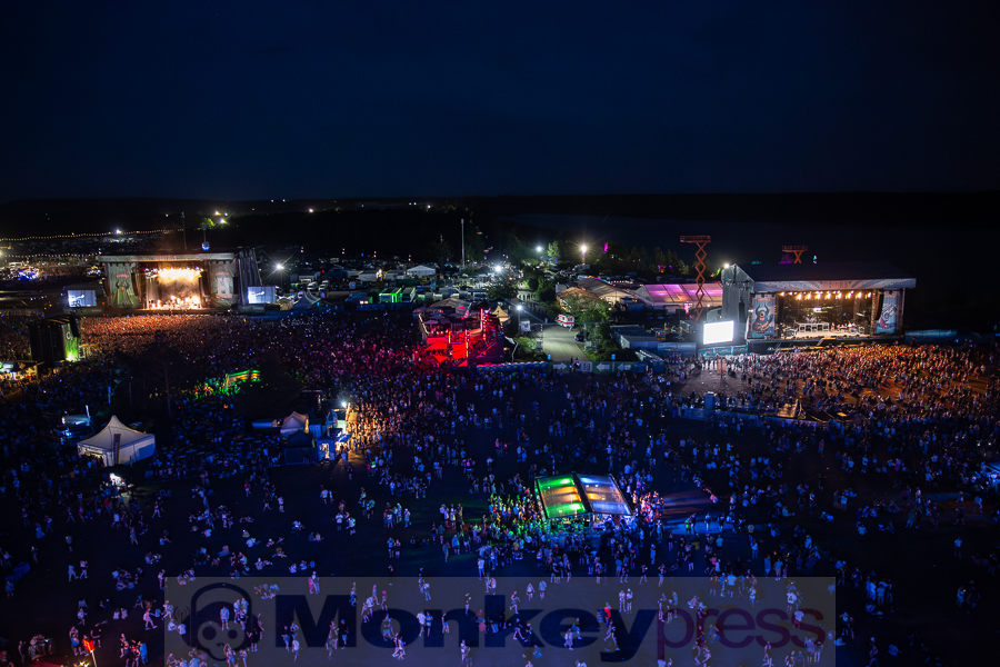 Danach folgte etwas, worauf viele Festivalgäste gewartet hatten – deswegen war es vor der Blue Stage auch mehr als voll. Tokio Hotel hatten sich angekündigt und dann ging es los. Die vier Jungs standen auf großen Podesten und waren so wirklich für alle gut zu sehen. Dabei stach das Outfit von Sänger Bill absolut heraus – glitzernd und sexy mit Cowboyhut und Chaps. Das vorrangig weibliche Publikum war ganz verzückt und sang vom ersten Ton an mit. Das war auch ganz gut so, denn Bills Stimme war anfangs etwas dünn – das lag aber wohl am Mikrofon, denn nach einem Wechsel wurde es besser. White Lies oder auch Automatic machten den Anfang. Die Gitarristen Tom und Georg hauten zwischendrin auch mal in die Tasten der Keyboards und Drummer Gustav throhnte souverän über allen. Auf der Bühne und davor wurde ausgelassen getanzt. Nach einem Outfitwechsel sah der Frontmann noch glitzernder aus und mit Feuerfontänen wurde zu Girl Got A Gun eingeheizt. Neben den neueren Stücken kamen auch alte Hits wie Spring Nicht an diesem Tag zu ihren Ehren, was die Fans freute. Die Band verriet, dass dies ihr „erster Festival-Sommer dieses Jahr“ sei und dafür waren sie echt gut drauf. Die Sonne ging gerade unter und die Arme der Massen bildeten bis in die letzten Reihen ein Meer – was für ein Anblick. Dieser Auftritt war die absolute Eskalation mit springen und mitbrüllen und allem was dazu gehört und selbstverständlich wurde als letztes auch der so heiß ersehnte Monsun besungen. Alles richtig gemacht die Herren – Ihr dürft gern wiederkommen!