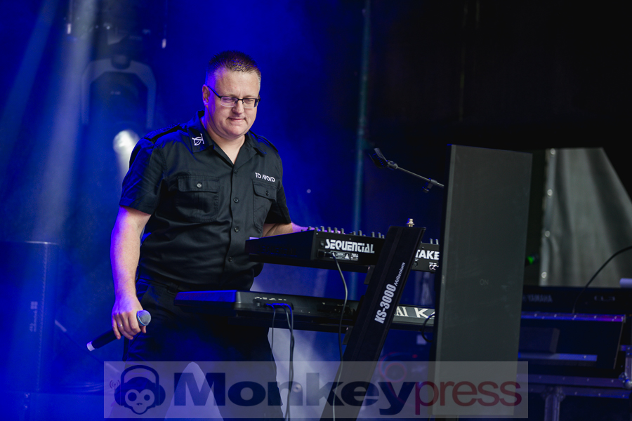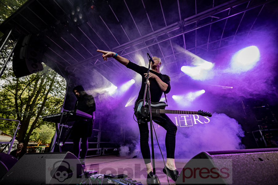 Mit düsterem Post-Punk ging es um 18:30 Uhr auf der Parkbühne weiter. Das kanadische Duo Traitrs wurde 2015 von Sean-Patrick Nolan und Shawn Tucker gegründet. Ihr Stil spiegelt die Musik der späten 1970er Jahre wider. Nicht nur Post-Punk spielt hier eine Rolle, sondern auch Coldwave und Gothic Rock. Der Sound überzeugt die Fans. Dicht gedrängt stand das Publikum vor der Bühne und feierte die Band. Zur selben Zeit spielte die deutsche Elektropop-Band Boytronic auf der Waldbühne. Bekannt wurde die Band bereits in den 1980er-Jahren. In der aktuellen Besetzung sind sie seit 2017 unterwegs. Viele Fans des 80er-Synthie-Pop-Sounds versammelten sich jetzt vor der Bühne.