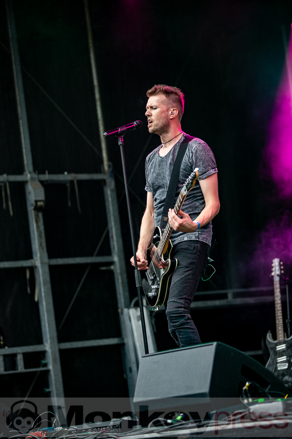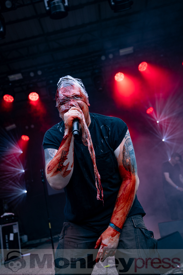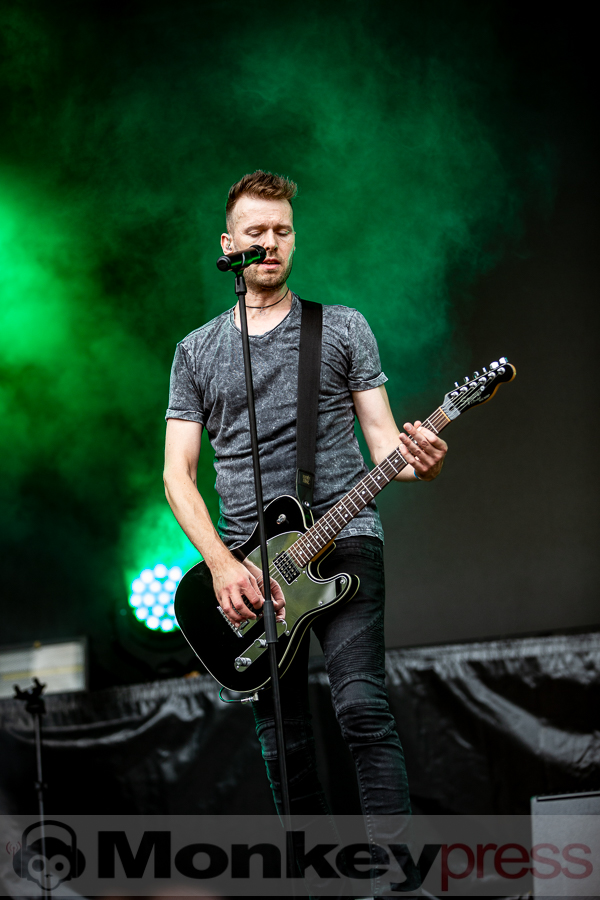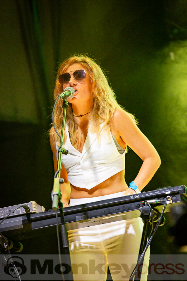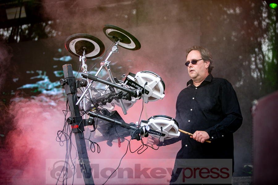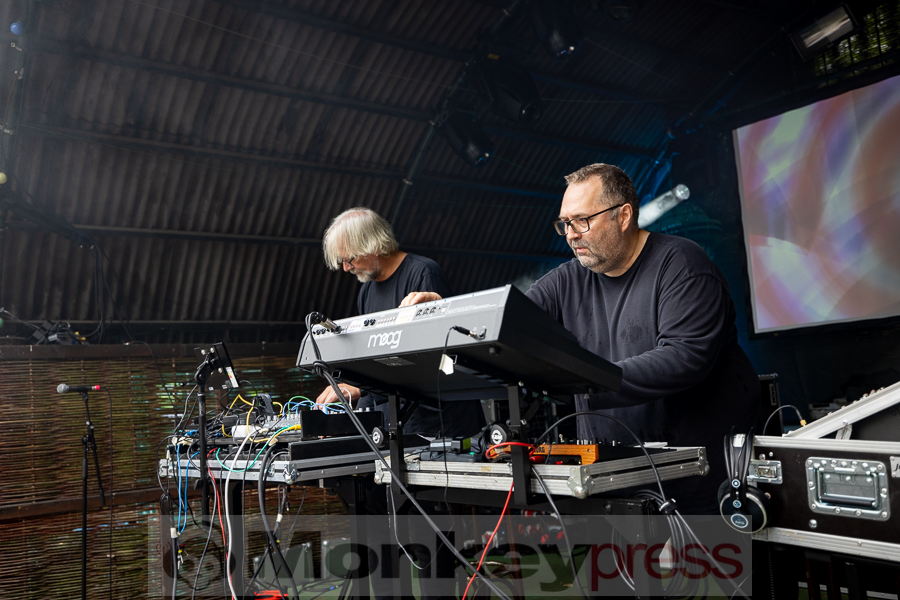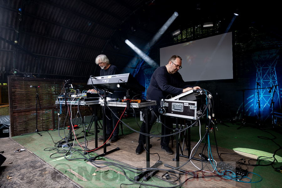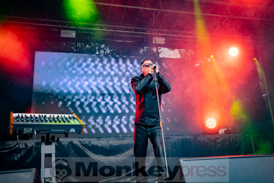 Erstaunlich viele Besucher warteten anschließend an der Parkbühne. Hier begann dann um 13:00 Uhr der Auftritt von End Of Transmission. Die Electro-Wave-Band wurde 2020 gegründet und habe seitdem ein Album veröffentlicht. Der eingängige Gesang und der melodische Sound kamen gut beim Publikum an. Parallel begann auch die erste Show des Tages auf der Waldbühne. Zoodrake wurde 2019 von Hilton Theissen gegründet, der sich schon mit anderen Projekten einen Namen gemacht hat. Hier konnte man nun einerseits Synthie-Pop wahrnehmen, andererseits spielte die Band auch Songs, die mehr in Richtung Alternative Rock gehen. Dieser gelungene Mix lockte auch einige Besucher vor die Bühne.