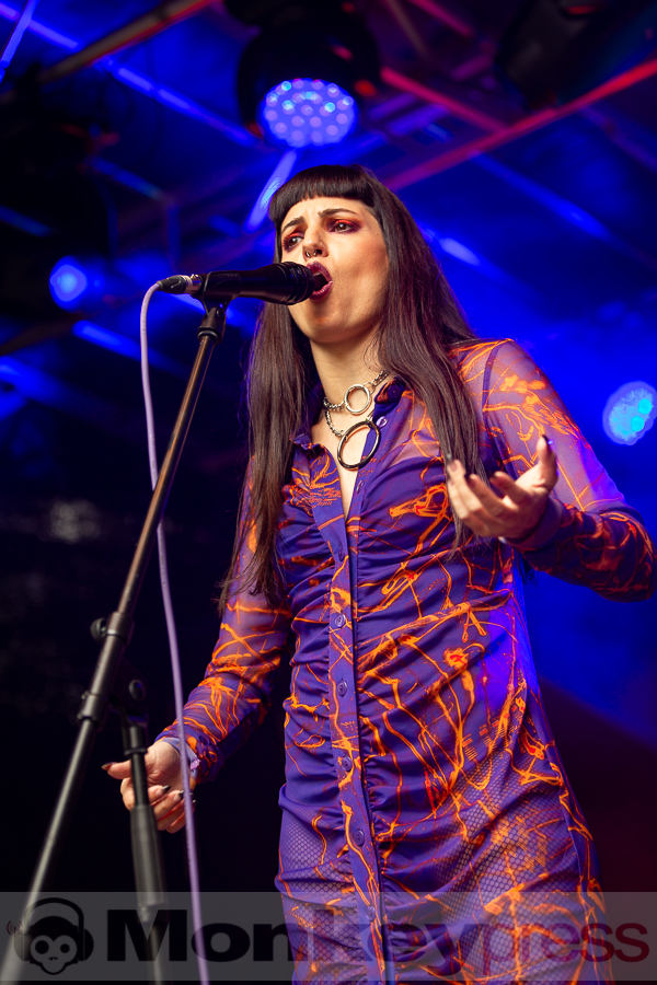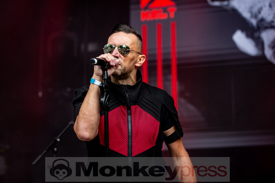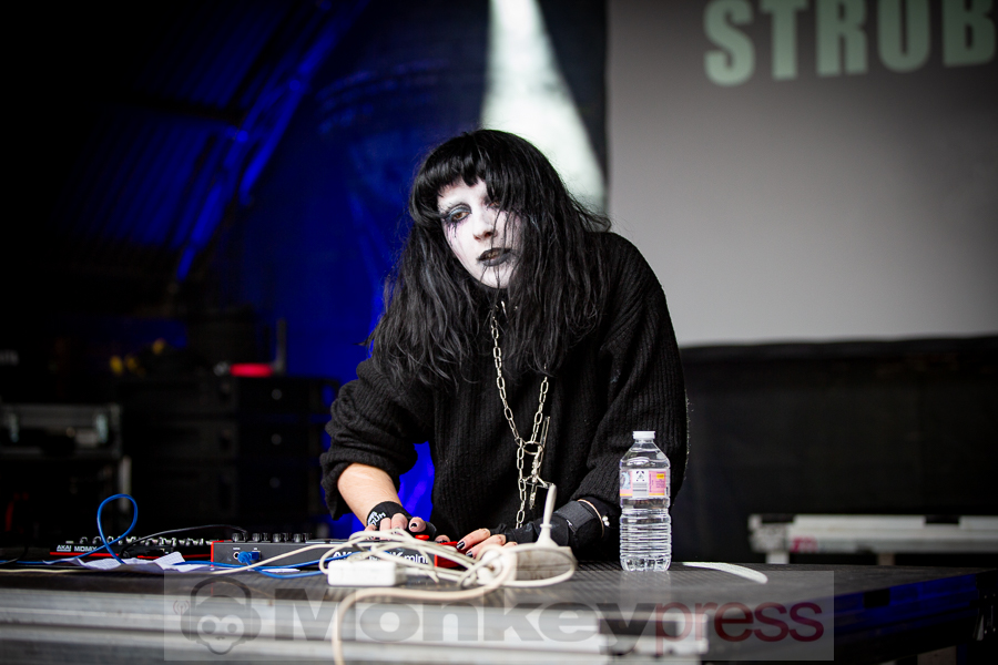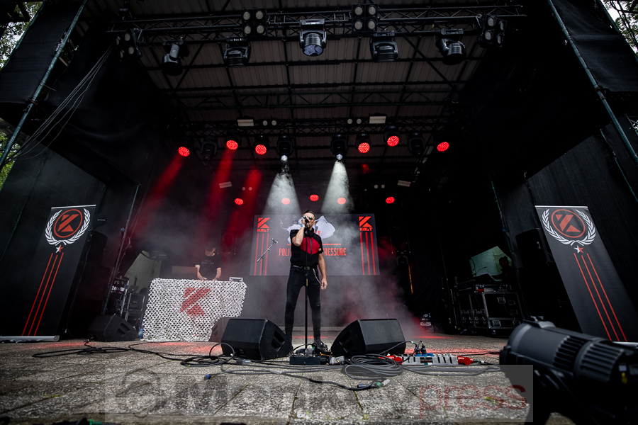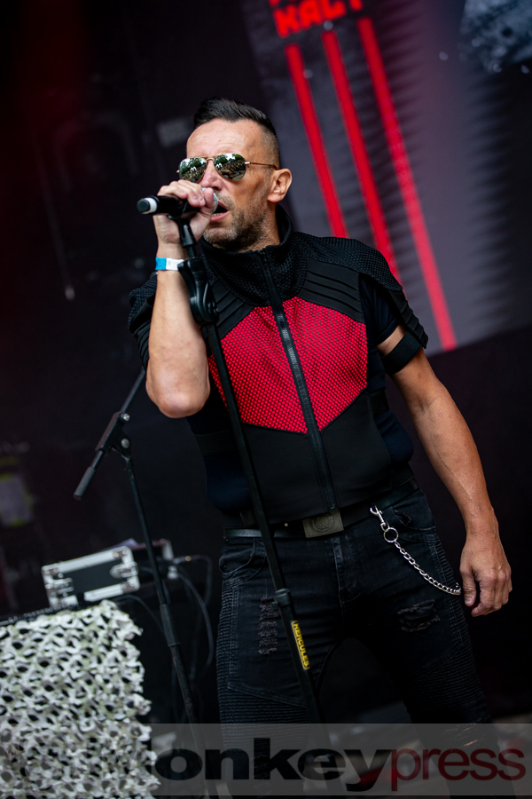 Musikalisch etwas härter ging es danach auf der Amphibühne weiter. Die EBM-Formation KALT stammt aus dem französischen Grenoble und veröffentliche 2020 ihr erstes Studioalbum. Hier gab es nun klassischen EBM im Stil der frühen 1990er Jahre. Jetzt war für viele Besucher tanzen angesagt. Ebenfalls elektronische Musik gab es zeitgleich auf der Kulturbühne. Das Soloprojekt Strobo.Lolita bietet eine Mischung aus Rhythm’n’Noise, Techno und Industrial. Überwiegend wurden Instrumentalstücke präsentiert. Strobo.Lolita lockte so einige Besucher vor die Bühne. Hier wurde ebenfalls ausgelassen getanzt.