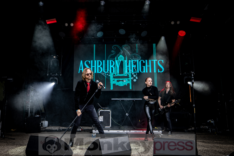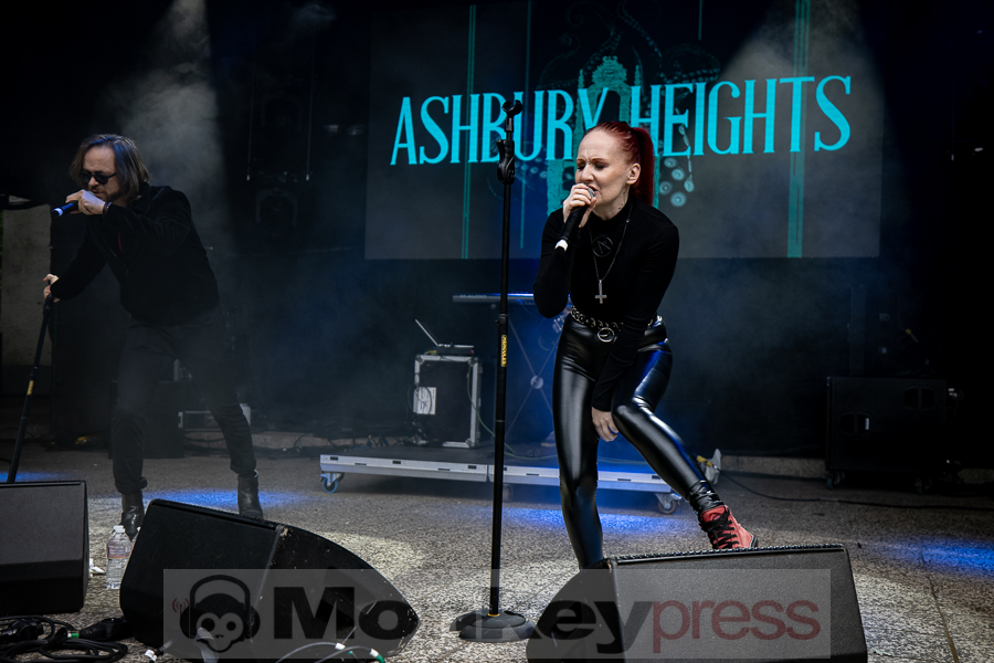 Gegen 15:20 Uhr betraten Ashbury Heights die Amphibühne. Sie sollten bereits letztes Jahr auf dem NCN auftreten. Nun wurde die Show nachgeholt. Für diese Zeit war es nun vergleichsweise sehr voll vor der Bühne. Die schwedische Electro-Band kennzeichnet sich durch eingängige Melodien und abwechslungsreiche Songs aus. Männlicher und weiblicher Gesang werden geschickt kombiniert. Anders Hagström and Yasmine Uhlin konnten das Publikum von Anfang an fesseln und lieferten eine ubeeindruckende Show ab. Zur gleichen Zeit startete der Auftritt von Larrnakh auf der Kulturbühne. Musikalisch ging es hier in eine total andere Richtung. Die aus Ungarn stammende Neofolk-Band verwendet neben akustischer Gitarre und Bassgitarre auch Violine und Cello, was in den Songs für eine einzigartige Stimmung sorgt. Viele Gäste nutzen die Gelegenheit, um bei angenehmen Temperaturen diesen Auftritt zu genießen.