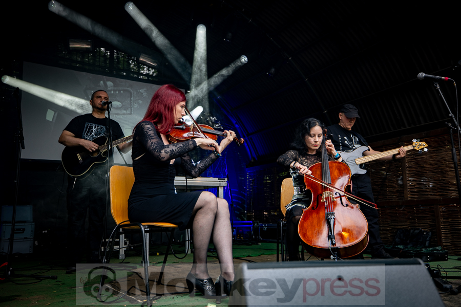 Langsam wurde es dunkel und gegen 19:45 Uhr traten Janus auf der Amphibühne. Diesmal gab es eine Akustik-Show, also im Stil des Modern Classical. Mit ihren Musikinstrumenten wie Cello, Kontrabassklarinette und Piano verzauberte die Band das Publikum. Gepaart wurde dies mit deutschen Texten, die zum Nachdenken und Entspannen anregten. The Devil And The Universe begannen zeitgleich ihre Show auf der Kulturbühne. Seit 10 Jahren sind die Musiker aus Österreich bereits unterwegs. Musikalisch bewegt sich das Projekt zwischen New Wave, Black Metal und Ritual. Die Band schaffte es sofort, die Fans mit ihrer Show und Musik zu begeistern.
