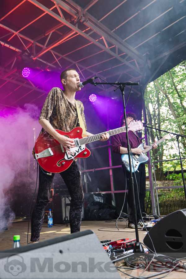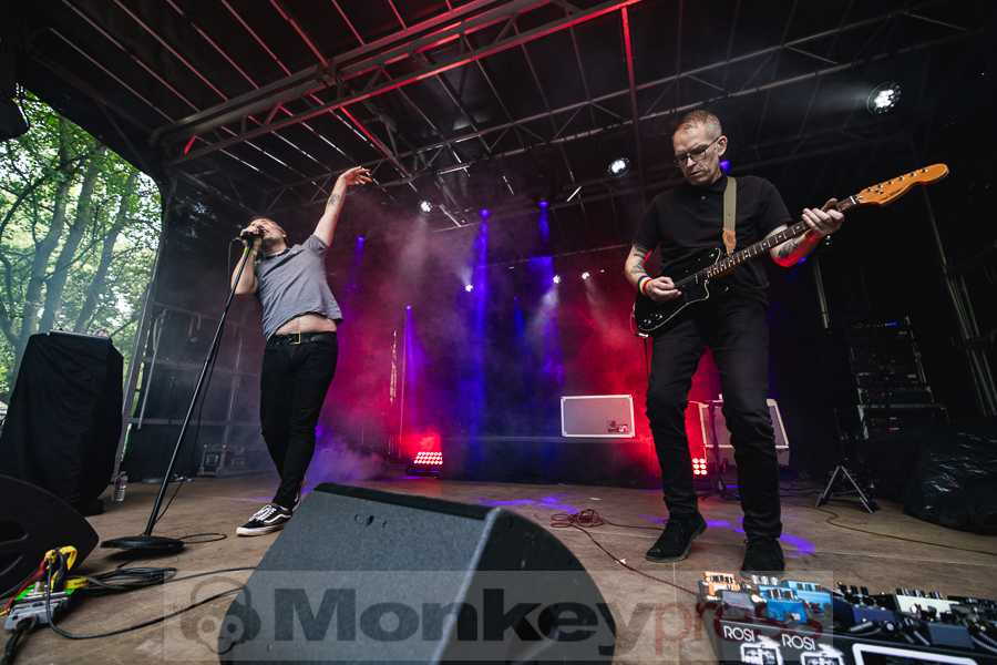 Um 16:15 Uhr begann auf der Waldbühne die Show von The Other. Die deutsche Horrorpunk-Band wurde 2002 in der Nähe von Köln gegründet. Dicht gedrängt standen einige Fans in den ersten Reihen. Mit finsterem, ausdrucksvollem Punkrock, auffallenden Outfits und Schminke sowie einprägsamen Gesang fesselte die Band die Zuschauer sofort. Parallel spielte auf der Parkbühne die niederländische Band Bragolin. Das Projekt von Edwin van der Velde verwendet Einflüsse aus Post-Punk und Dark Wave der letzten Jahrzehnte. Diese Komposition lockte so einige Zuschauer vor die Bühne.