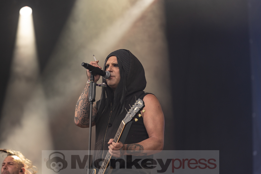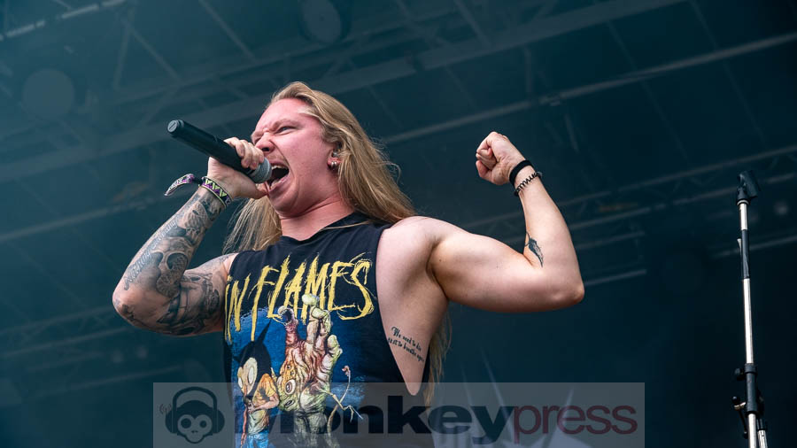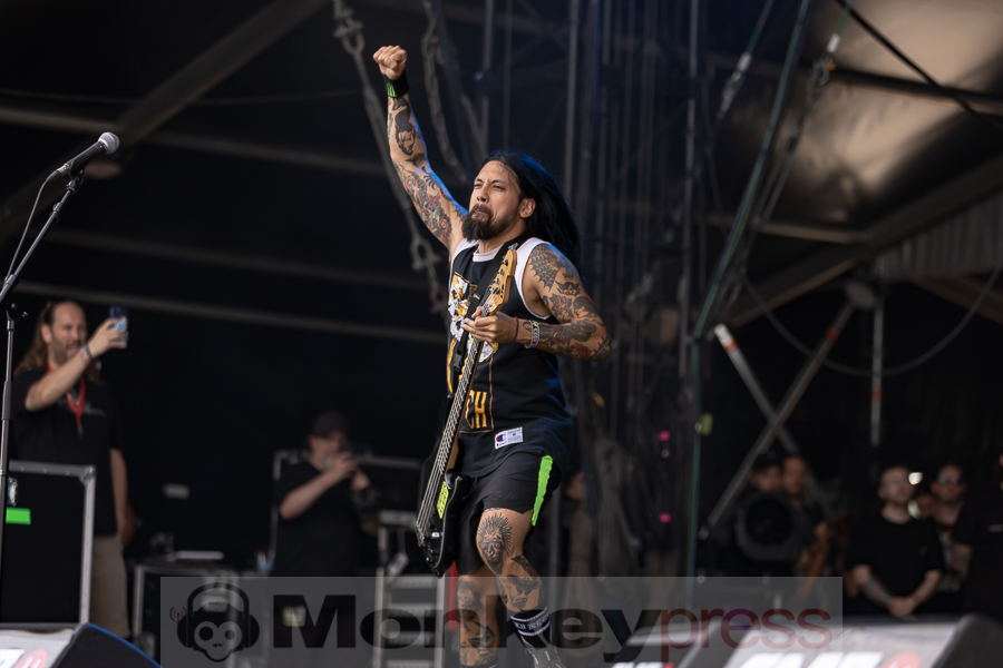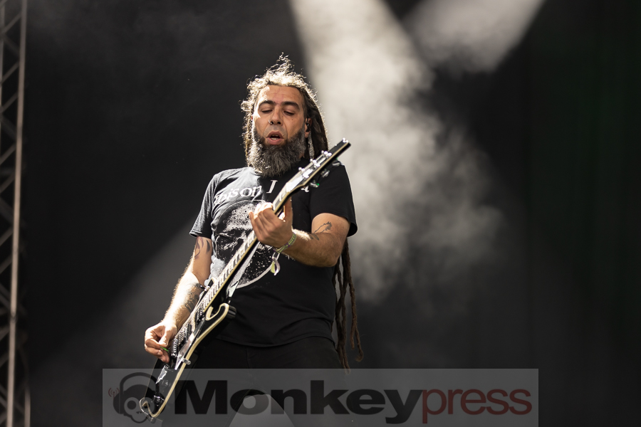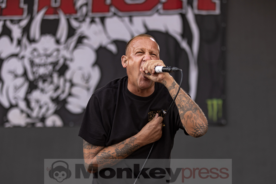 Wer nun noch nicht in der Sonne verbrannt ist, geht zum Hardcore-Metal von Terror, die Band mobilisiert auch wieder so einiges an Publikum vor der Bühne und startet den Circle Pit Ventilator, um die Hitze zu reduzieren. Die Breakdowns sitzen und das Publikum zerstört sich mit Spit My Rage oder One With The Underdogs einfach mal selbst. Bei der Energieentwicklung + Hitze könnte man so einige Energieprobleme auf der Welt lösen.