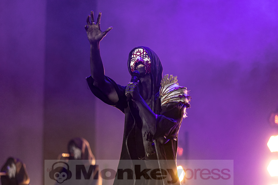 Nach dem nicht ganz so ernsten Auftritt von Frog Leap wird es mystisch, die Senkrechtstarter von Sleep Token erscheinen nun in dunklen Gewändern auf der Bühne und zelebrieren ihren Auftritt regelrecht wie auch das noch zahlreich vorhandene Publikum. Die Band beherrscht dabei die Mischung der verschiedenen Genres und ihren Auftritt perfekt. Ihr Material lässt viele verwunderte Gesichter vor der Bühne aufhorchen und die Band kann mit Granite, Hypnosis oder Higher mehr als überzeugen.