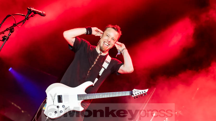 Was Frog Leap auf einem Headlinerslot zu suchen haben, ist zumindest ein wenig fragwürdig. Klar sind der norwegische Tausendsassa Leo Moracchioli und seine Backingtruppe (u.a. ein psychotischer Karnickel und Gitarrengott Rabea Massad) vor allem in der Online/Youtube-Community große Nummern, aber die glorifizierte Coverband ist halt eben nur eine solche, auch wenn die dargebotenen Versionen von Welthits wie Africa (Toto), House Of The Rising Sun (Eagles) oder dem Pokémon Theme durchaus auf Resonanz stoßen. Gute Show, aber ein wenig underwhelming – doch dem Publikum scheint’s zu gefallen, also alles im Lot.