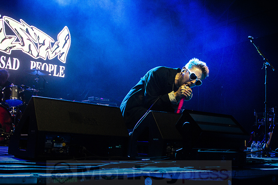 Was nicht heißt, dass das Gebotene schlecht war, ganz im Gegenteil. Zunächst heizten Wargasm mit ihren „Angry Songs For Sad People“ kräftig ein. Das Duo Milkie Way (eigentlich Rachel Hastings) und Sam Matlock fand 2018 zusammen und teilt offensichtlich die Liebe für Nu Metal und Elektropunk. Aus diesen Genres mischt sich der Sound der Gruppe, die live mit zwei zusätzlichen Musikern zum Quartett anwächst. Das verzückte bereits schon Enter Shikari, die mit Wargasm den Song The Void Stares Back aufnahmen und ihnen auf ihrer 2022er-Tour einen Supportslot einräumten. Aber auch Limp-Bizkit-Frontmann Fred Durst scheint Gefallen an dem englischen Gespann gefunden zu haben und lieh dem Song Bang Ya Head seine Stimme für ein Feature. Der stand dann auch auf der zehn Songs umfassenden Setlist und wurde von Sam mit den Worten „This is something we recorded with a friend that has got a lot to do“ präsentiert. Das Stück repräsentiert gleichzeitig alle Vorzüge, aber auch Probleme, die man mit dem Sound von Wargasm haben kann: Die Gruppe versprüht massig Energie und ist deshalb geradezu die perfekte Vorband, an eingängigen Ohrwurm-Hooks, die die Songs einen auch privat gerne hören lassen, mangelt es aber noch. Hier siegt bislang Wut über Raffinesse.