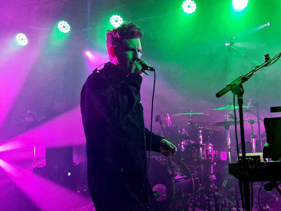 Bestens gelaunt begrüßte uns Andrew, dem ebenfalls die kurios fröhliche Musik im Vorfeld aufgefallen ist: „That’s an R.E.M. song. It has been on a loop for one hour now.“ Unify Separate erlösten uns nun aber von dieser Eintönigkeit. Beginnend mit Closure eröffneten die beiden ihr wohlklingendes Electro-Pop-Set. Inmitten des Songs stieß der Fronter einen Befreiungsschrei heraus. Seine klare Stimme hat man sofort wiedererkannt. Nur wenigen Herren der Schöpfung gelingt es, solch immense Höhen zu erreichen und dabei noch verdammt gut zu klingen. Besonders catchy kam ihre Single Dying On The Vine daher. Leo stieg gesanglich mit ein und das Wechselspiel ihrer Stimmen matchte hervorragend. „Wie geht’s? Mehr deutsch kann ich nicht. We’re Unify Separate. We’re from Sweden. We started playing with Diary of Dreams maybe about three years or so ago. And guess, where the first gig was?“ Es war ein Leichtes diese Frage zu beantworten. Schließlich können Diary of Dreams auf eine besondere Fan-Treue bei ihren Konzerten zählen. Die Lösung lautete: „here!“ Genau, und zwar am 10.10.2019 „Yeah! It’s nice to be back. This is our new single called ,City Of Light‘.“ Gerade mal am 01.12. erschien der Neuling. Darin geht es um das bittersüße Gefühl der Freiheit, das man verspürt, wenn man kleine Momente lebt und jegliche Probleme ausblendet. „In the city of light let’s forget who we are, tonight. Make it all go away, it’s okay to believe the lie.“