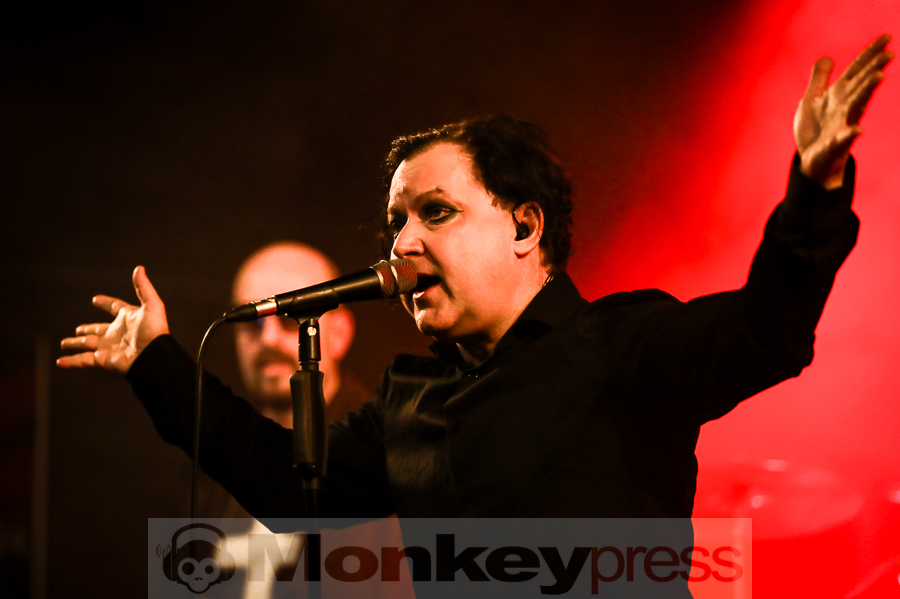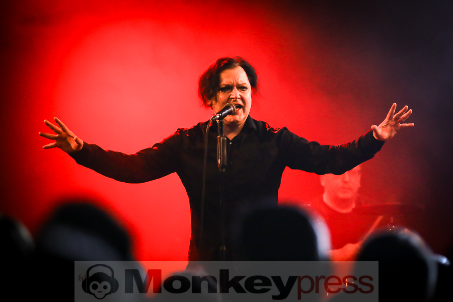 Sänger Janne Marvannen stellte seine Band kurz vor und Lifeline bot einen blendenen Einstieg in das Set. Die eingängige Electroperle vermochte niemanden stillstehen zu lassen. Direkt hatten die Jungs das Publikum auf ihrer Seite. „Hello Oberhausen. We’re gonna play a song from our new album ,Love Disappears‘. This one is called ,Time Has Come‘.“ Etwas ruhiger und waviger kam der Folgetitel daher. Nun konnte man die Band Member auch auf sich wirken lassen. Robert Broj verdeckte seine Augen hinter einer coolen Sonnenbrille und lieferte hinter seinen Keys eine lässige Performance. Mit seiner leicht schräg aufgesetzten Cappy wirkte Jakub Zachoval an der Gitarre noch richtig jugendlich. Und dieser Gig schien ihm sichtlich Spaß zu machen. Auf der aktuellen Tour verzichtete Janne auf seine schwarz Wollmütze. Sein längeres, braun-gelocktes Haar passte wunderbar zu seinen mit Kajal umrandeten Augen. Mit seinen nietenbesetzten Halbschuhen sorgte er für einen weiteren Blickfang. Zu Tear Down The Wall drehte sich der sympathische Fronter um die eigene Achse und war völlig in seinem Element. Immer wieder kam er dicht an den Bühnenrand, um dem Publikum ganz nahe zu sein.