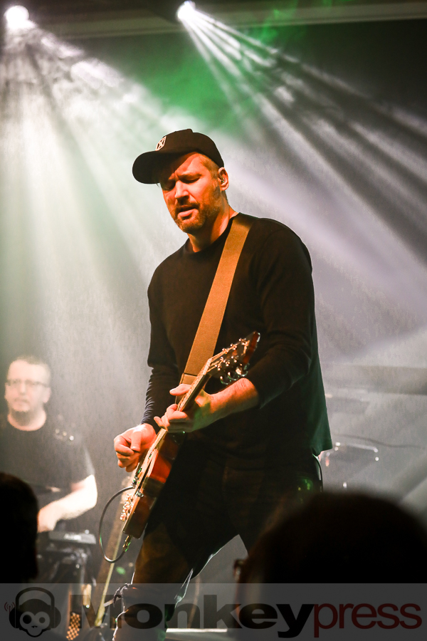 Im Publikum stachen bereits einige textsichere Fans hervor. Marcus hat sich mittlerweile als Drummer etabliert und verlieh der Show straight noch ein bisschen mehr Würze. Zu dem seichten und zugleich tanzbaren Stück My Death blickte Kyle lächelnd in die Menge. Marcus motivierte die Fans mitzuklatschen. Stimmungsvoll ging es mit dem elektronisch-sphärischen Clubkracher Dark Clouds weiter. „I wanna see your hands.“ Hierzu mussten die Gäste nicht sonderlich gebeten werden. Nun kam der Sänger ganz nach vorn und vereinte seine Hand mit der ein oder anderen Hand seiner Fans. Mit seiner beeindruckend tiefen Stimme zog er dabei die in Besucher seinen Bann. „It’s so good to be back in Oberhausen. Thank you very much for having us. This next one is new. This is called ,The Old Arcade‘.“ Richtig melancholisch kam der neue Midtempo Song daher. My Guardian machte uns erneut Beine. Kyle sah man währenddessen einfach zu gerne dabei zu, wie er am Mikro stand und litt, während er tief in seinen Songs versank. Mit glasklarer Stimme präsentierte uns der Fronter die gefühlvolle Ballade When We Are Apart.