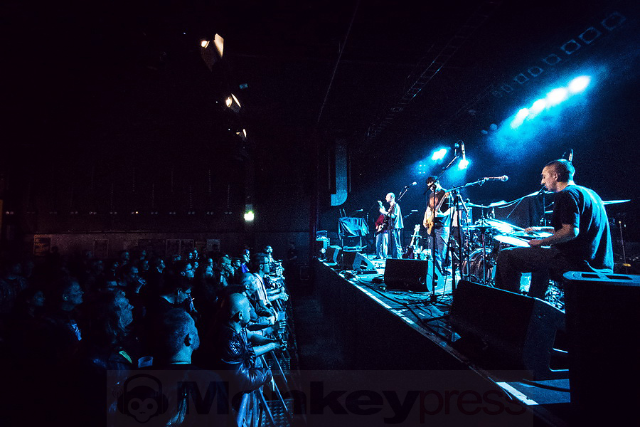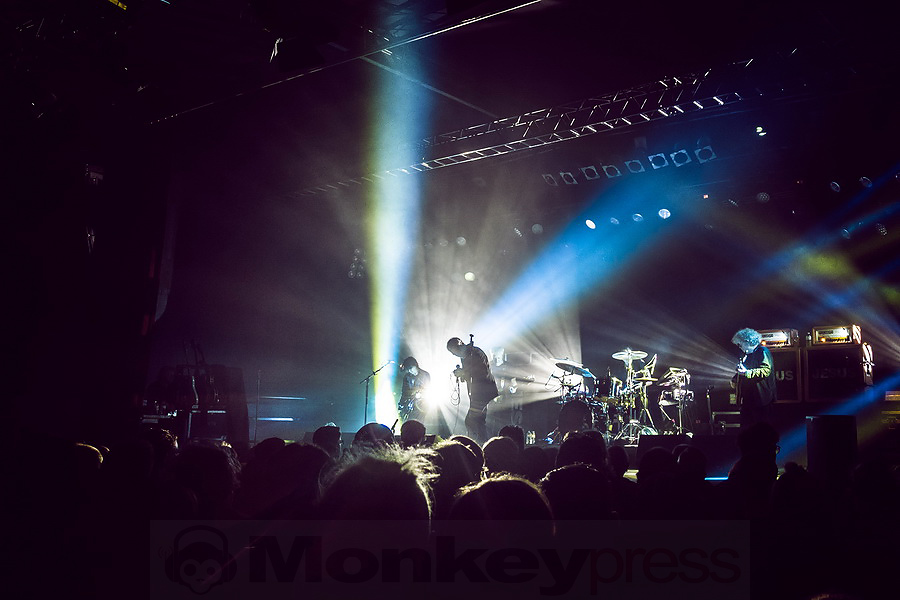 Für diesen Teil der Tour war die Londoner Post-Rock-Band Deathcrash als Vorband am Start gewesen. Irgendwo zwischen Mogwai und Doom Metal zu verorten, ist ihr Sound sehr langsam und melancholisch, aber auch laut und emphatisch – und passt somit ausgezeichnet zu The Jesus and Mary Chain! Ohne direkt Emo zu klingen, präsentiert der Sänger Tiernan Banks seine Lyrics in einer sehr ruhigen, dumpfen Stimmlage, mehr sprechend als singend, und paart dies perfekt mit den sehr klassisch klingenden Post-Rock-Instrumentals der Band. Wenn dies auch technisch nicht immer perfekt klang (zugegeben, es gab ein paar kleinere Probleme mit der Technik), so passte dies doch ironischerweise sehr zum depressiven Gesamtbild der akustischen Landschaft, die Deathcrash lautstark bemalten. Auch die Lautstärke war überraschend passend: Die sonst eher als “zu leise” bekannte Location hat an diesem Abend bewiesen, dass es auch lauter geht, wenn es nötig ist – und davon durfte auch die Vorband schon profitieren. Kudos! Zu schade, dass die Band nur knappe 25 Minuten spielen durfte; wie ich finde, viel zu wenig.