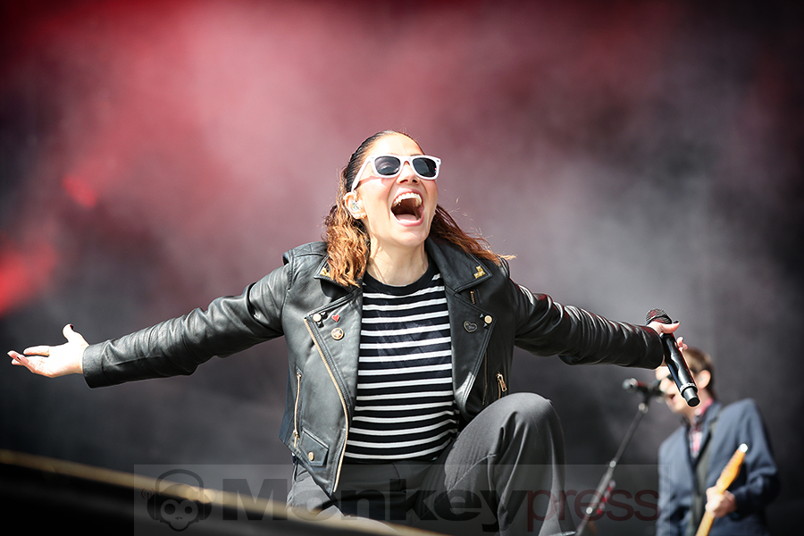 Unterwegs zur Mandora Stage passieren wir die Toiletten, die im Vergleich zum Vortag eine neue Geruchsdimension erreicht haben. Das wolltet ihr jetzt nicht wissen, wa? Die Mandora Stage haben wir schon jetzt ins Herz geschlossen. Hier findet sich immer ein Plätzchen, egal ob direkt vor der Bühne oder an den Seiten und das ohne Anstehen für Zonen, wie das bei der Utopia Stage der Fall ist. Da das Gelände nach vorne zur Bühne hin leicht abfällt, erlaubt es auch weit hinten eine gute Sicht. Den Auftritt der US-Rocker von The Last Internationale lässt sich am besten in den ersten Reihen erleben. Meine Fresse – das war ein amtlicher Abriss. Die Band explodiert vor Spielfreude, das Kernduo um Sängerin Delila Paz und Gitarrist Edgey Pires zelebriert die Definition einer Rockshow. Paz, in einem schwarz-rot-goldenen Onesie, findet sofort den Zugang zum Publikum und verausgabt sich bei jedem Song, während Kollege Pires, klassich-lässig mit Lederjacke, seinem Instrument Solo um Solo entlockt. Spürbar ist die Energie zwischen Paz und Fans, als die Frontfrau zum Ende des Sets ins Publikum steigt.
