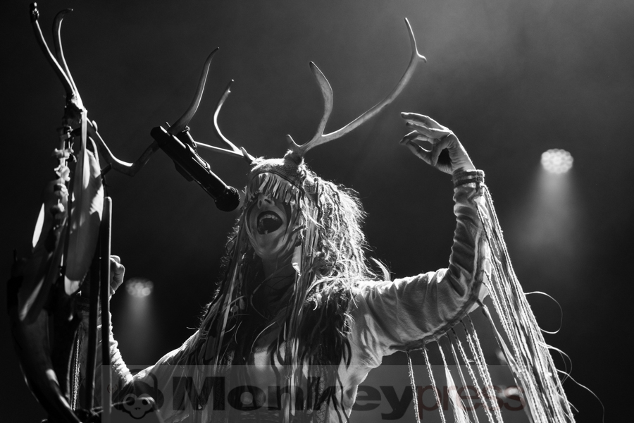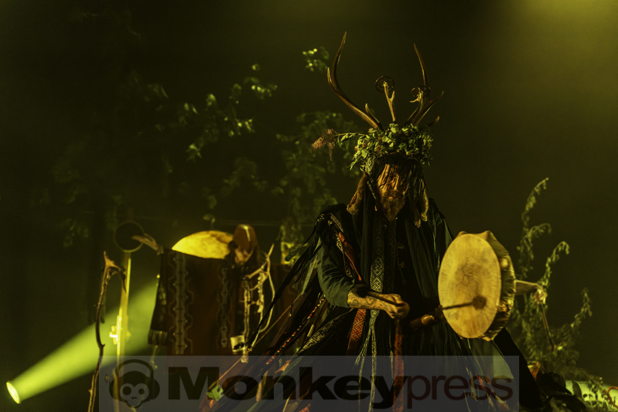 Während sich die Band Stück für Stück durch ihre Setlist arbeitete, steigerte sich die Intensität immer mehr. Die sich wiederholenden Rhythmen, die immer wieder von Marias sphärischem Gesang durchbrochen, ließen das Publikum in einen fast meditativen Zustand verfallen. Die Musik wurde von eindringlichen Bewegungen zahlreicher Krieger auf der Bühne begleitet. Es war fast so, als würde man selbst Teil eines alten, mythischen Rituals werden. Doch so fesselnd diese Momente auch waren – äußere Einflüsse konnten einen manchmal aus diesem Zustand reißen. Gerade in solch intimen und magischen Augenblicken lenkten Handybildschirme und filmende Zuschauer doch stärker ab, als es bei einem herkömmlichen Konzert der Fall gewesen wäre.