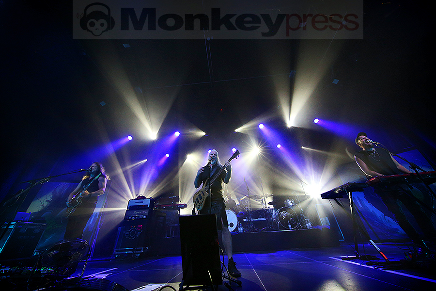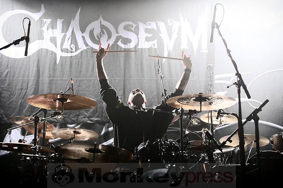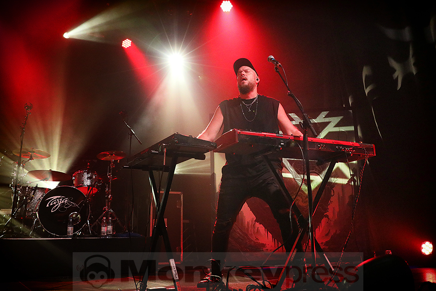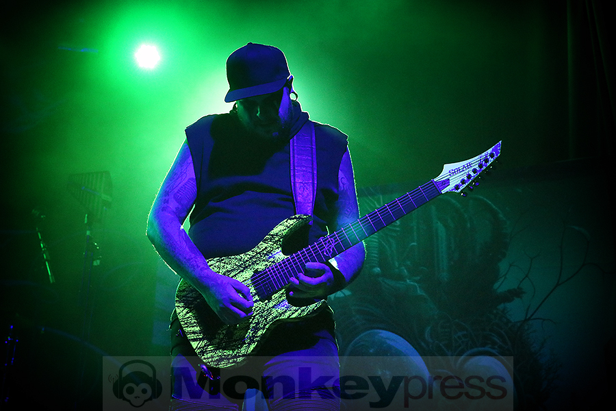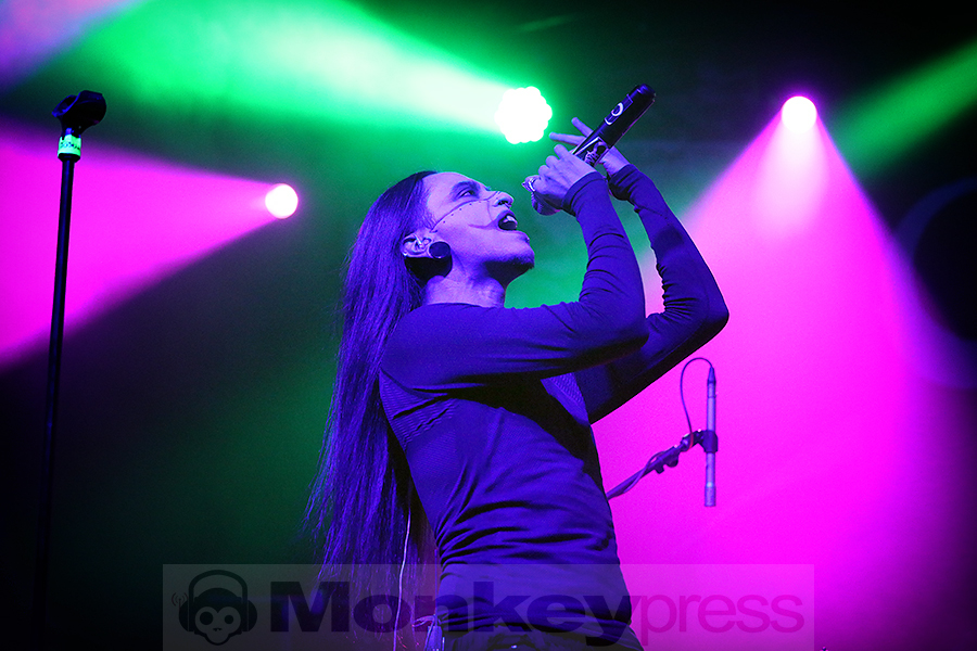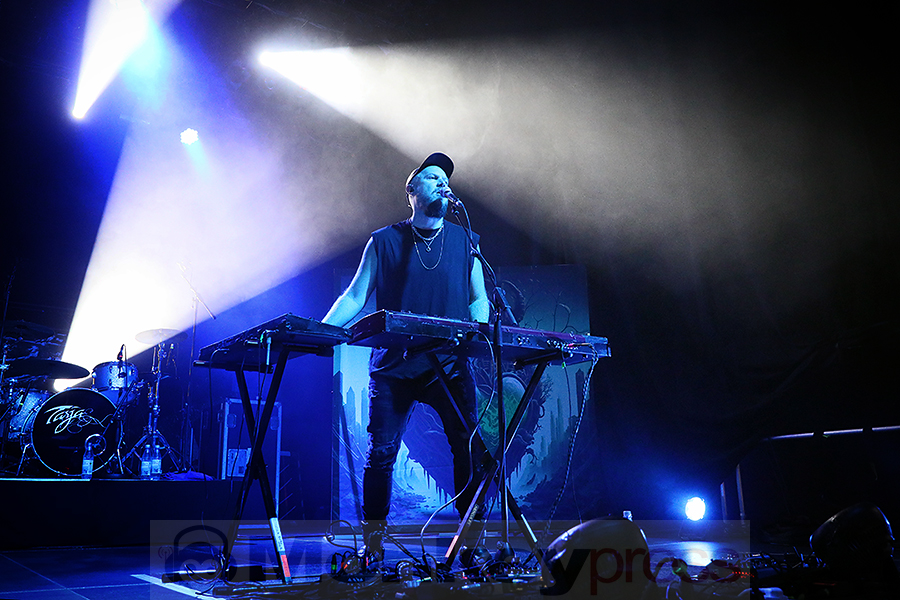 Doch zunächst gehörte die Bühne einer Band aus ebenjenem Land, das damals katalysierend auf die Wiedervereinigung gewirkt hatte. Hoffnungen auf eine deutschsprachige Ansage machte Chaoseum aber gleich zunichte: „We are Chaoseum from Switzerland and no, we don’t speak german, sorry!“, lachte Fronter CK Smile. „But that’s good because Schwitzerdütsch is so weird“. Wo er recht hat… Die Band stammt aus dem französischsprachigen Teil unseres Nachbarlandes. Am Anfang kam die Musik der Jungs noch recht wenig an, die Resonanz aus dem Publikum in Frankfurt war relativ verhalten. Die meisten wollten wohl erst einmal abwarten, was sie hier erwartet. Doch nach und nach tauten die Anwesenden in der sehr gut gefüllten Batschkapp auf, und klatschten fleißig mit und setzen auch die Arme ein. Die Mischung aus Growling und Klargesang fand in den ersten Reihen dann doch einige Abnehmer. Drummer Greg Turini fiel mir persönlich sehr positiv durch großen Körperseinsatz auf. „We are so happy to be on this stage, opening for the amazing artists Marko Hietala and Tarja Turunen“, erklärte Smile noch gegen Ende und hinterließ so ein sehr sympathisches Bild.