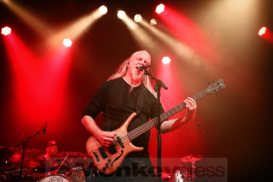 Nach einer großzügigen Umbaupause war es nun an Marko Hietala, den Staffelstab zu übernehmen. Mit seinem breiten Wolfsgrinsen kam der begnadete Musiker auf die Bühne, umgeben von seiner treuen Live-Band. An den Keys fanden wir dieses Mal nicht Vili Ollila vor, sondern mit Robert Engstrand einen anderen Live-Keyboarder, der seine Sache aber auch sehr gut machte. Zunächst machte der Frontmann eine Ansage, die einerseits nicht überraschte, andererseits aber doch. Für das Konzert in Obertraubling, zwei Tage zuvor, war er krankheitsbedingt komplett ausgefallen. Er hatte in einem emotionalen Video-Statement von seinem Fieber und dem Arztbesuch berichtet. Für unseren Gig in Frankfurt war Hietala offenkundig wieder am Start, wenn auch nicht ohne Einschränkungen. „I have voice trouble and was put in a moral dilemma“, erzählte Marko eindringlich. „It’s better now but far from perfect. We’ll give you a set that isn’t totally live. We took some vocals from previous shows and put them on a disc. We don’t want to lie to you. Do you still want to have such a show?“. Lauter Jubel ließ keinen Zweifel daran, dass die Batschkapp diesen Auftritt trotzdem erleben wollte. „I’ve never done this before and I never would if I was at full power“, bekannte der Fronter. „And I would always tell you if this happens!“.