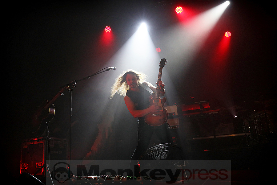 Marko eröffnete mit Songs seines Debutalbums Mustan sydämen rovio bzw. der englischsprachigen Version Pyre of the black heart. Nach Star, Sand and Shadow und Dead God’s Son bekamen wir das erste finnischsprachige Stück zu hören, das Markos Vater gewidmet ist, der laut dem Sohn ein „an outstanding dude“ war. Nach For You kündigte der Sänger einen Stilwechsel im Set an. „Notorious prog at it’s best. Four minutes of guitar! Do you like Tuomas‘ playing?“. Nun kündigte er neue Songs an und zwar harte Rocknummern. Rebel of the North, Frankenstein’s Wife und Proud Whore warfen als Neuheiten-Block in der Setmitte erste Schlaglichter auf das kommende, zweite Album. Der letztgenannte Song handelt laut Marko von einigen seiner Jugendsünden, die er aber nicht bereue. „My grandma would be offended“, kommentierte er den Titel des Stücks noch. Ich glaube, dass etliche Tarja-Ultras von der Vielfältigkeit von Markos Musik überrascht waren und mehr Spaß hatten als ursprünglich gedacht.