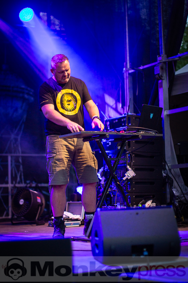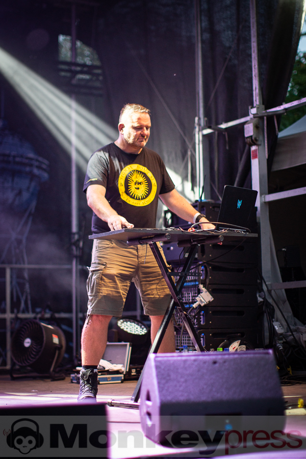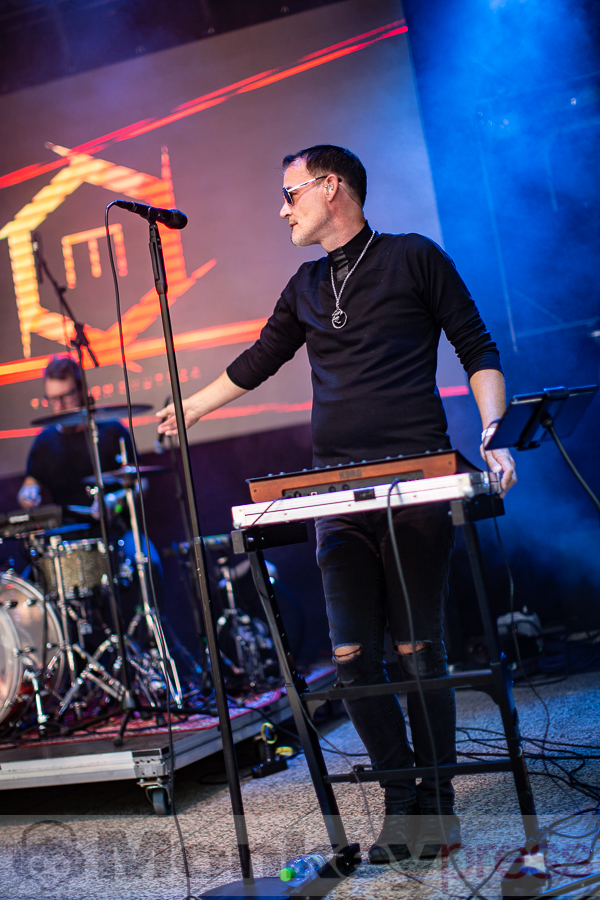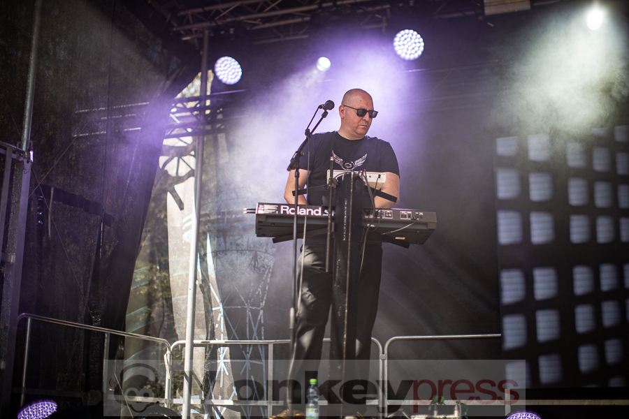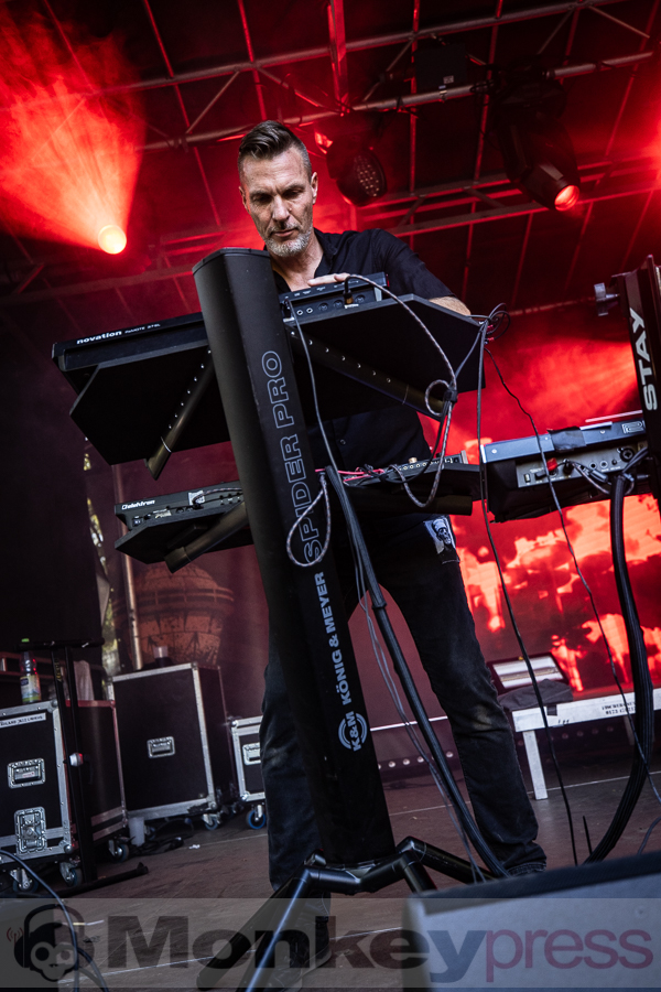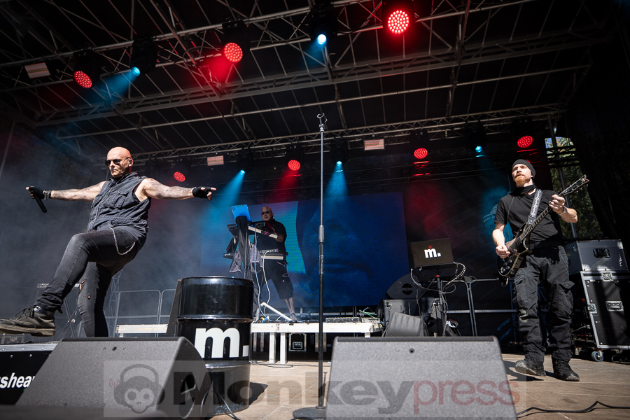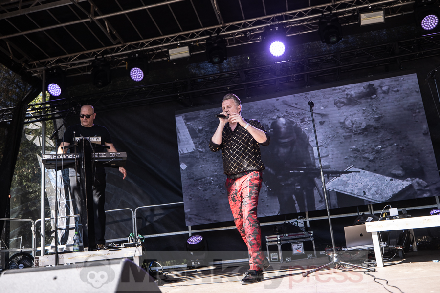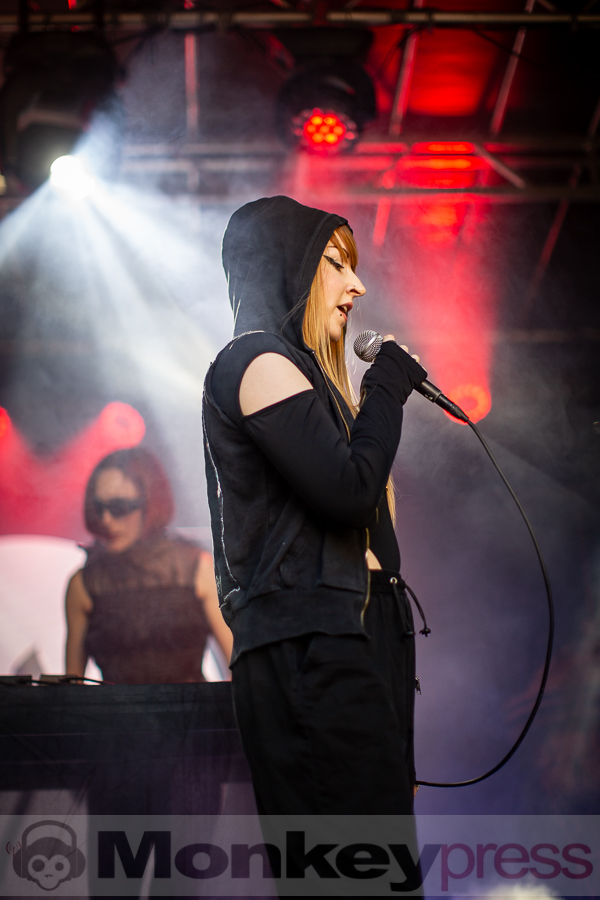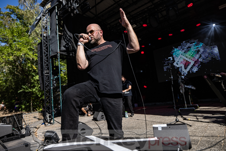 Auch der zweite Tag (die Rückblende auf Tag eins findet Ihr unten) begann bei schönstem Spätsommerwetter. Wie üblich öffneten die Tore bereits um 11 Uhr, da schon alsbald die erste Band spielen sollte. Pünktlich um 11:50 Uhr war es dann auf der Parkbühne soweit. Neugierig warteten hier schon die ersten Frühaufsteher. Es sollte sich lohnen. Denn jetzt wurde es Zeit für das aus UK stammende Duo Capital X. Seit mehr als zehn Jahren machen sie bereits Musik. Der Stil reicht von New Wave über EBM bis Techno. Gespannt warteten hier schon die ersten Besucher. Sie konnten gleich loslegen und zum rhythmischen Sound tanzen. Zeitgleich startete der Tag auf der Waldbühne mit der Electro-Industrial-Band Minusheart. Neben genretypischen Synthesizer-Sounds nutzt die Band auch den Einsatz von Gitarren. Die Sonne war sehr grell. Wenige Zuschauer wagten sich dennoch nach vorne. Weitere genossen die Show von den schattigen Plätzen des Geländes aus. Minusheart legt sich sowohl mit Gesang und Musik ins Zeug, um die Menge wachzurütteln.