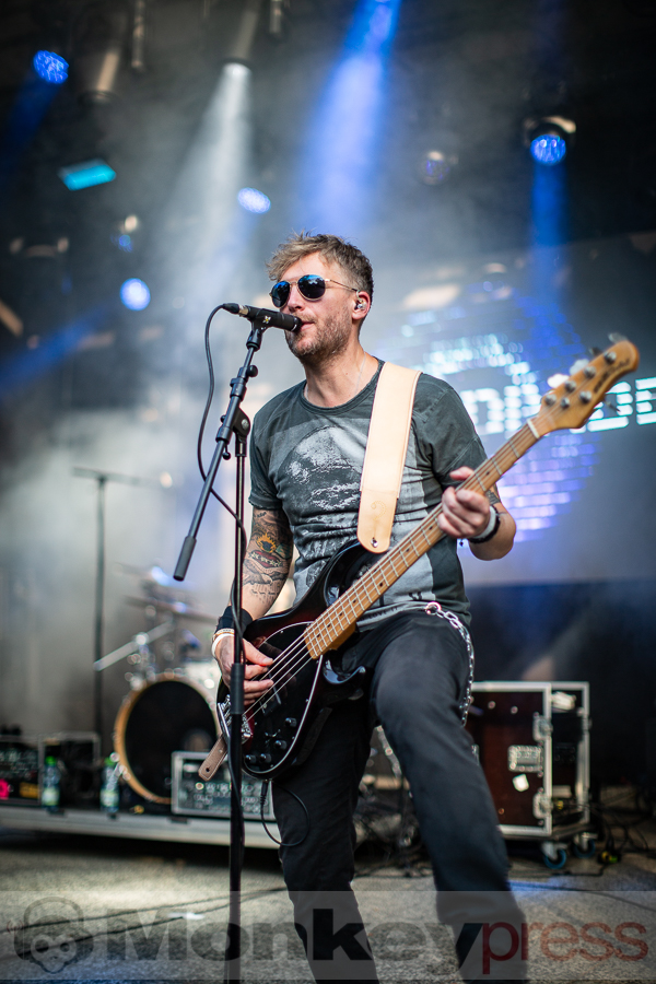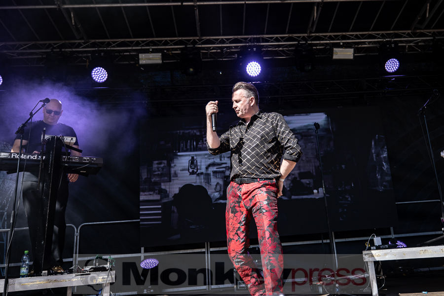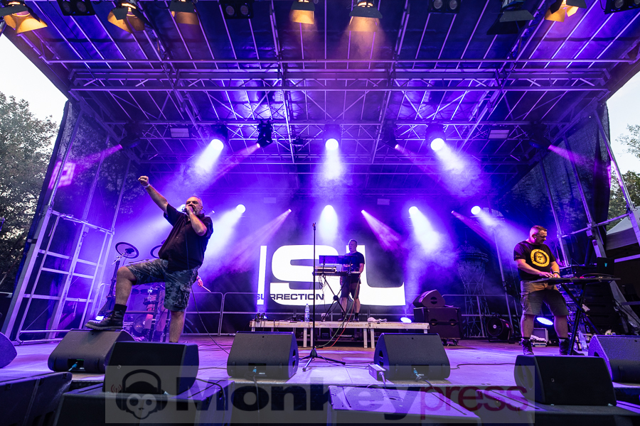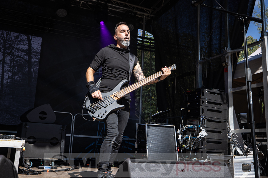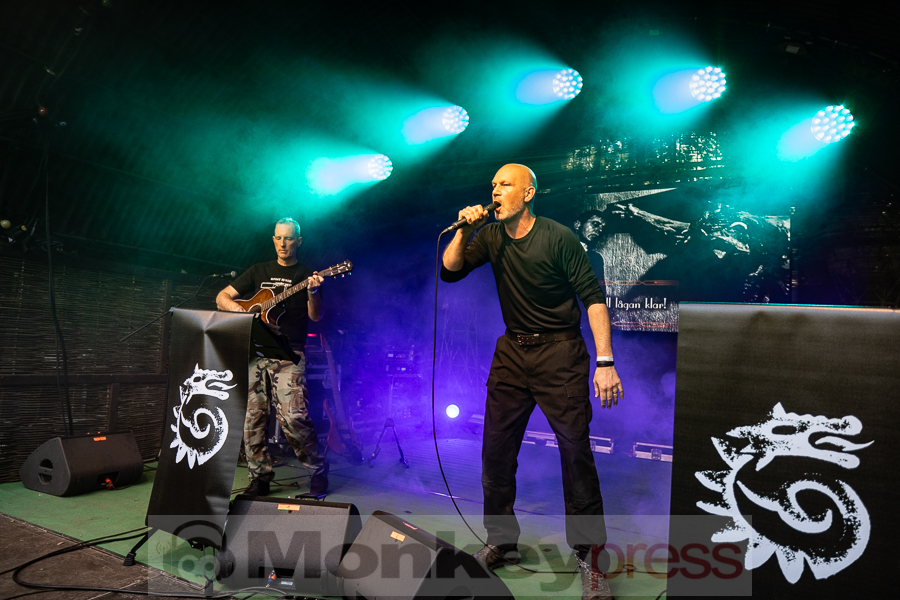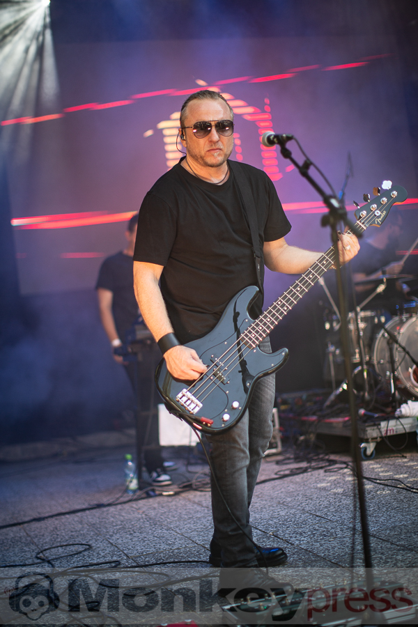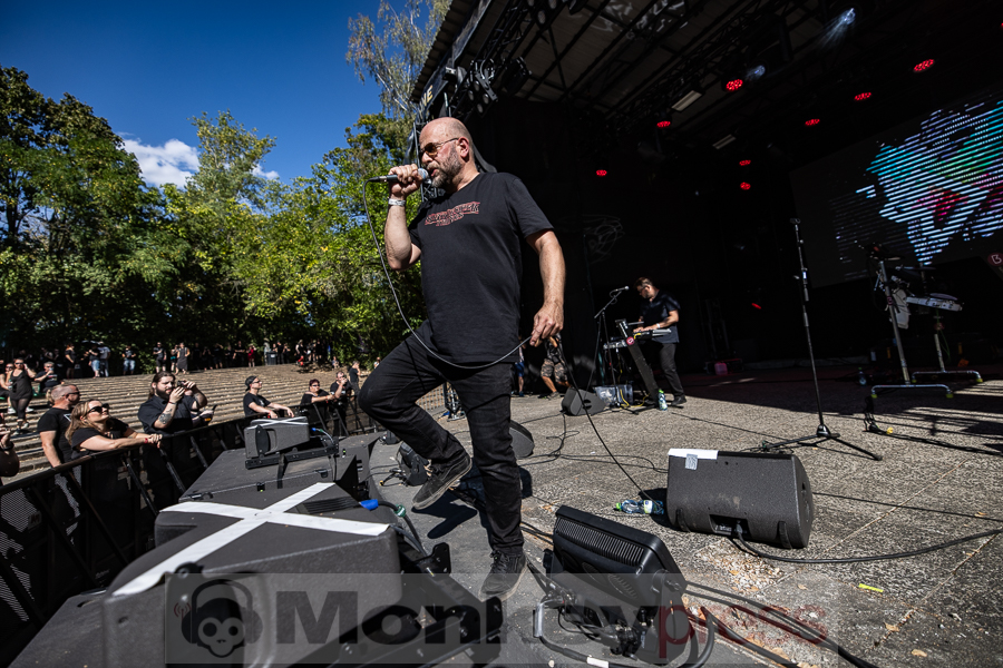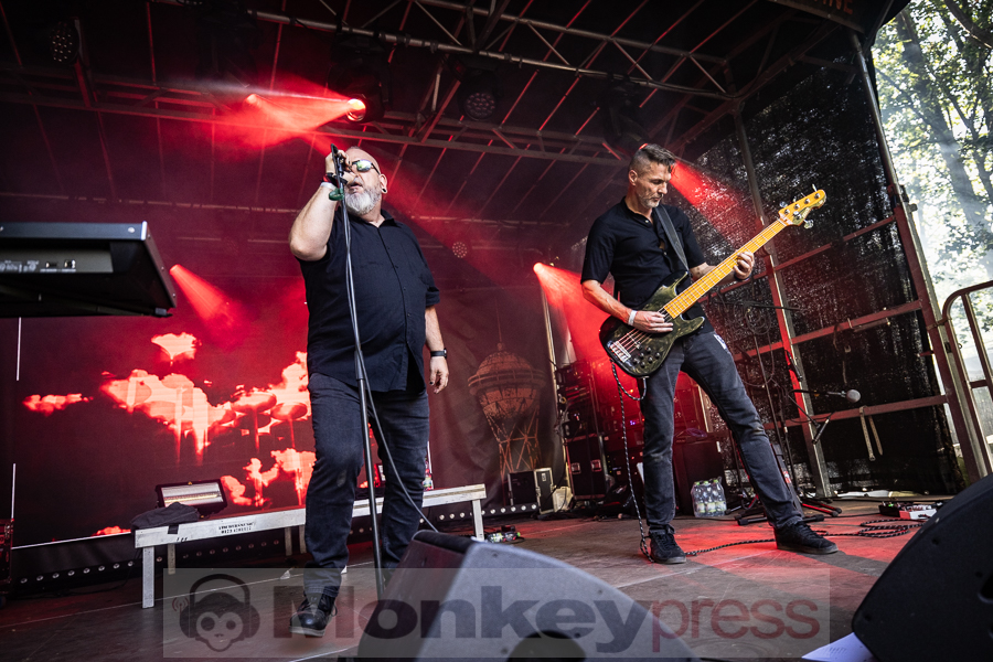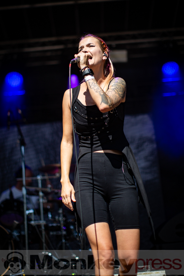 Auch der zweite Tag (die Rückblende auf Tag eins findet Ihr unten) begann bei schönstem Spätsommerwetter. Wie üblich öffneten die Tore bereits um 11 Uhr, da schon alsbald die erste Band spielen sollte. Pünktlich um 11:50 Uhr war es dann auf der Parkbühne soweit. Neugierig warteten hier schon die ersten Frühaufsteher. Es sollte sich lohnen. Denn jetzt wurde es Zeit für das aus UK stammende Duo Capital X. Seit mehr als zehn Jahren machen sie bereits Musik. Der Stil reicht von New Wave über EBM bis Techno. Gespannt warteten hier schon die ersten Besucher. Sie konnten gleich loslegen und zum rhythmischen Sound tanzen. Zeitgleich startete der Tag auf der Waldbühne mit der Electro-Industrial-Band Minusheart. Neben genretypischen Synthesizer-Sounds nutzt die Band auch den Einsatz von Gitarren. Die Sonne war sehr grell. Wenige Zuschauer wagten sich dennoch nach vorne. Weitere genossen die Show von den schattigen Plätzen des Geländes aus. Minusheart legt sich sowohl mit Gesang und Musik ins Zeug, um die Menge wachzurütteln.