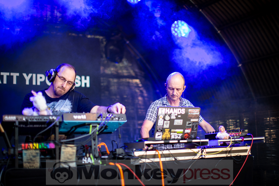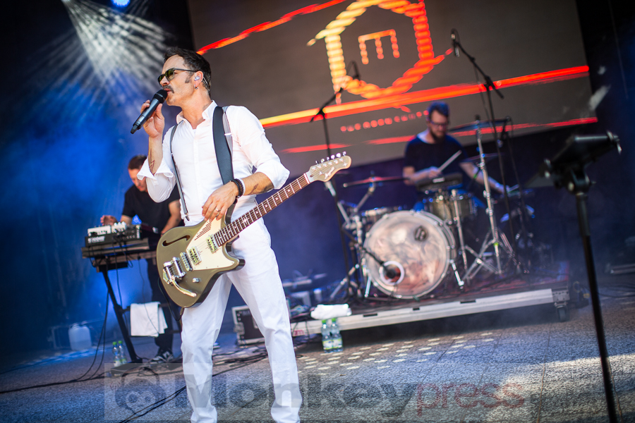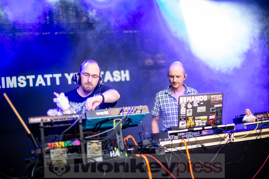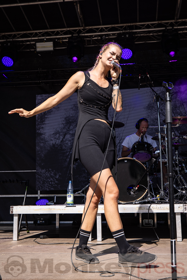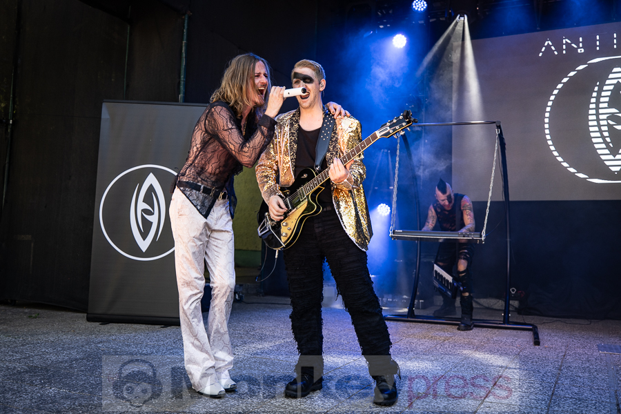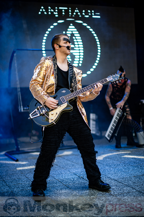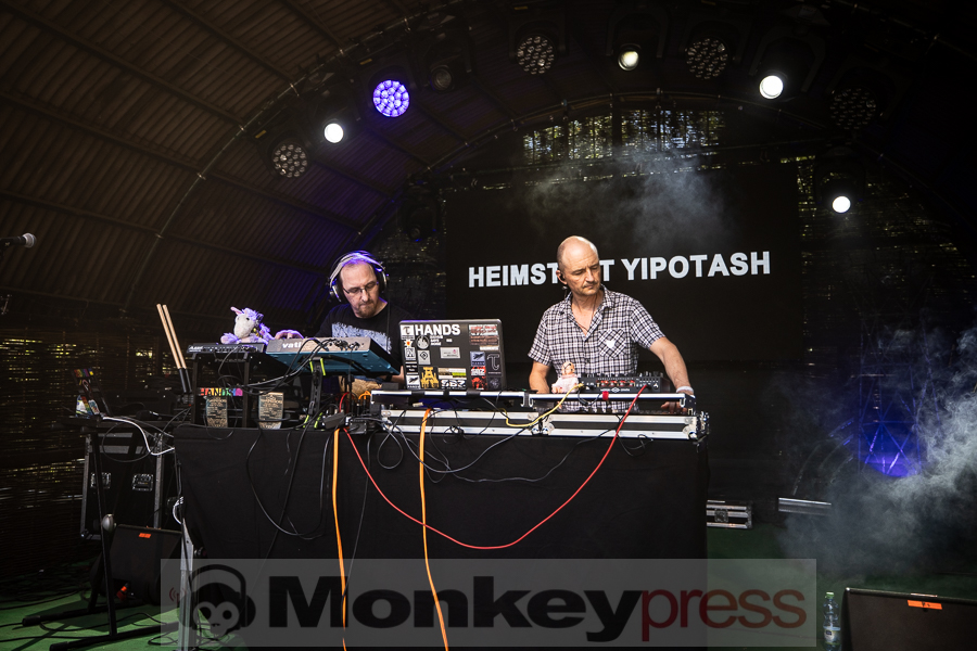 Eine halbe Stunde später folgte die Band Antiage auf der Amphibühne. Die aufstrebende Synthie-Pop-Band hat bis jetzt zwei Alben veröffentlicht. Sie kombinieren verschiedene Musikstile und sorgen somit für einen frischen und abwechslungsreichen Sound. Um das Ganze abzurunden, wurden sie noch von Tänzerinnen unterstützt. Viele Besucher wollten sich dies nicht entgehen lassen und genossen die Show. Für Fans des Rhythm’N‘Noise gab es unterdessen die erste Show auf der Kulturbühne. Das Duo Heimstatt Yipotash macht schon seit mehr als 20 Jahren Musik. Die Band kombiniert pulsierende Beats mit experimentellen Klängen. Auch hier erschienen die ersten Besucher, die gleich zum Tanzen animiert wurden.