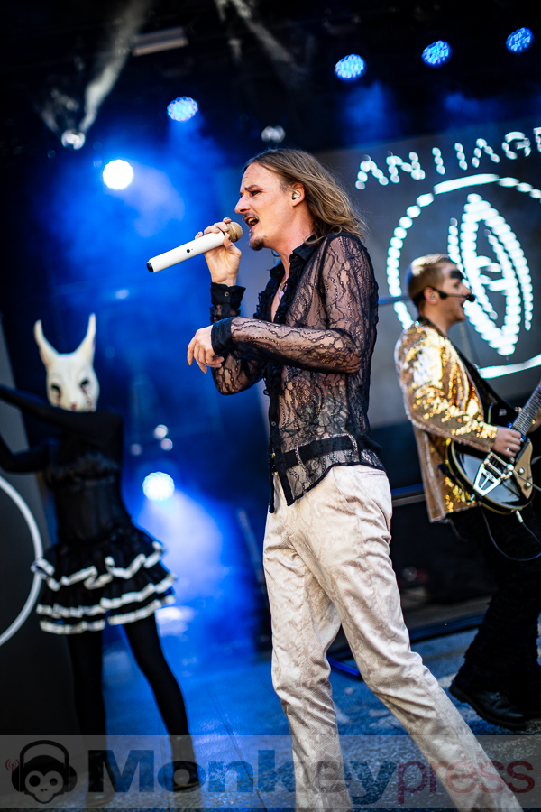 Um 22:15 Uhr war dann Zeit für das Electro-Project IAMX, dem Headliner des Tages. Dicht gedrängt bis in die hinteren Reihen standen nun viele Besucher vor der Bühne. IAMX, das Projekt von Chris Corner, verbindet experimentelle elektronische Elemente mit Pop und Rock. Dadurch entstanden viele eingängige und melodische Songs. Auch visuell kann IAMX live auf der Bühne überzeugen. Während der Show wurden viele abwechslungsreiche Songs präsentiert. Für die Besucher war die Performance total außergewöhnlich und wird auch noch lange in Erinnerung bleiben. Nahezu parallel trat Dernière Volonté auf der Kulturbühne auf. Hierbei handelt es sich um das Projekt des französischen Künstlers Geoffroy Delacroix, das für seine fesselnde Mischung aus Neoklassik, Darkwave und Industrial bekannt ist. Die Songs waren überwiegend düster und experimentell. Dernière Volonté war ein gelungener Abschluss auf der Kulturbühne.