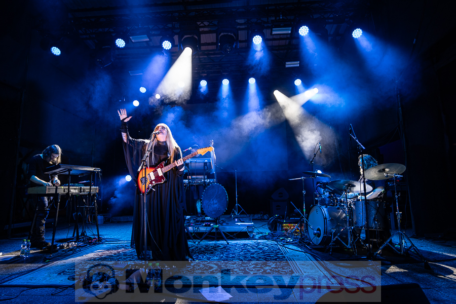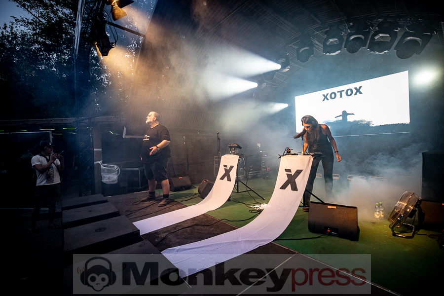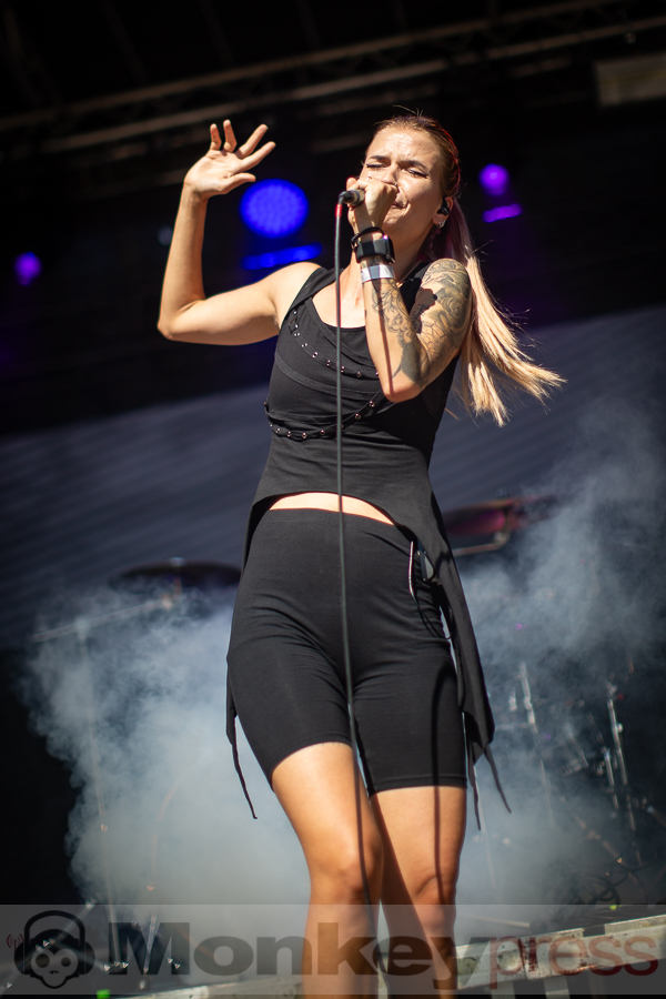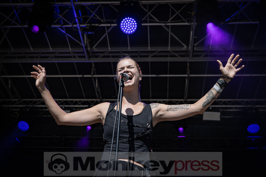Um 19:45 Uhr folgte XOTOX auf der Kulturbühne. Das Rhythm’N’Noise-Projekt von Andreas Davids existiert bereits seit 1998. Live wird auf einen detaillierten Bühnenaufbau gesetzt. Die Kombination aus mitreißenden Rhythmen, kraftvollen Synthesizern, verzerrten Beats und Samples animierte das Publikum zum Tanzen. Währenddessen wartete zur selben Zeit eine große Menge neugieriger Besucher vor der Amphibühne. Hier sollte mit der aus Färöer stammenden Künstlerin Eivør nun ein außergewöhnlicher Auftritt folgen. Musikalisch verbindet die Künstlerin traditionelle färöische Musik mit modernen Rock- und Pop-Elementen. Eivør begeistert ihr Publikum bei ihrer Show mit ihrer kraftvollen Stimme und emotionalen Darbietung und sorgte damit für eine magische Atmosphäre. Mit Sicherheit war das für viele Gäste eines der Highlights des gesamten Festivals.
