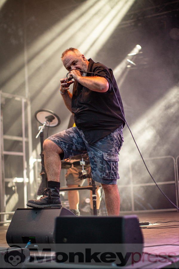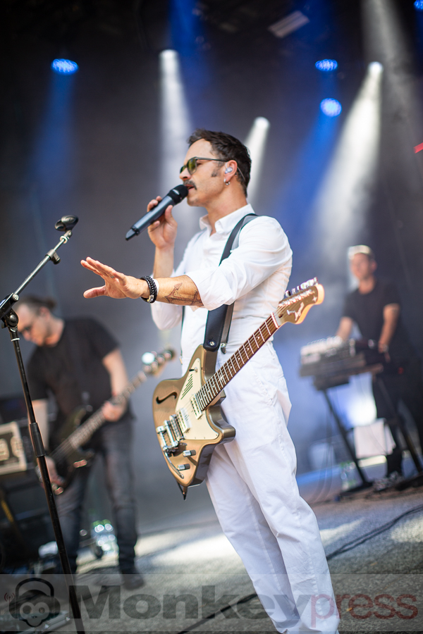 Um 15:20 Uhr folgte Kim Larsen auf der Kulturbühne mit einer Acoustic-Solo-Performance. Der dänische Künstler hat schon bei vielen Musikprojekten mitgewirkt, unter anderem bei Of The Wand & The Moon. Unter den beruhigenden Melodien der akustischen Gitarre konnten die Zuschauer eine wohlverdiente Auszeit nehmen und die Show in Ruhe erleben. Parallel trat auf der Amphibühne die Synthie-Pop-Band Beborn Beton auf. Die Band hat eine beeindruckende Historie vorzuweisen. Bereits Ende der 80er-Jahre gab es die ersten Veröffentlichungen. Eingängige Melodien und kraftvolle Synthesizer-Sounds werden durch melancholischen Gesang ergänzt. Begeistert standen viele Fans vor der Bühne und genossen die Show.