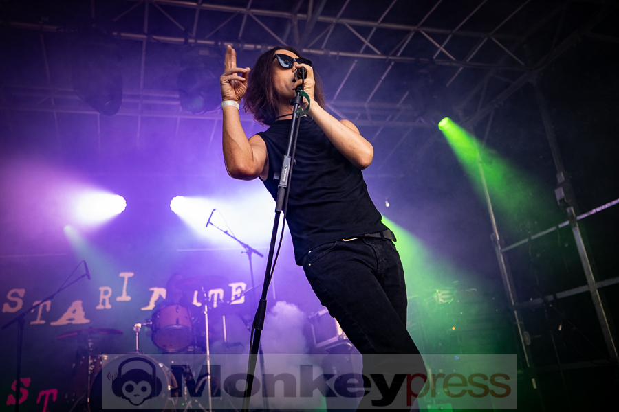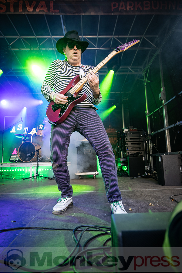 Die aus Florida stammende Band Astari Nite trat als nächstes um 14:30 Uhr auf der Parkbühne auf. In mehr als zehn Jahren Bandgeschichte können sie auf einige Veröffentlichungen zurückblicken. Live wird auf Gitarre und Schlagzeug gesetzt. Die Mischung aus Darkwave, Post Punk und Goth Rock kam gut beim Publikum an. Für Fans tanzbarer elektronischer Musik erschien zeitgleich Lights Of Euphoria auf der Waldbühne. Die Band macht seit rund 30 Jahren Musik. Diese ist kompromisslos, melodisch und hypnotisierend. Durch die starke Sonne trauten sich nur einige Fans direkt vor die Bühne. Jedoch konnte man auch weiter weg im Schatten gut tanzen.
