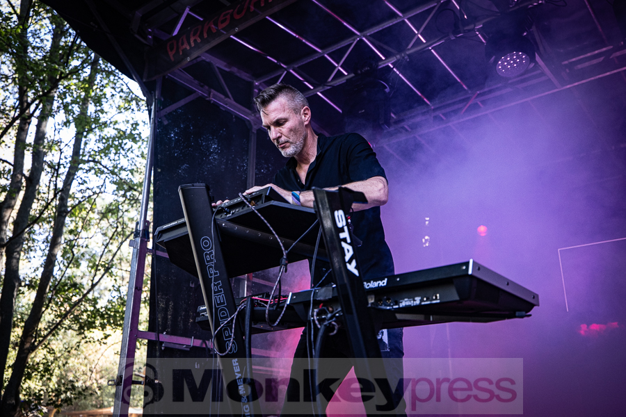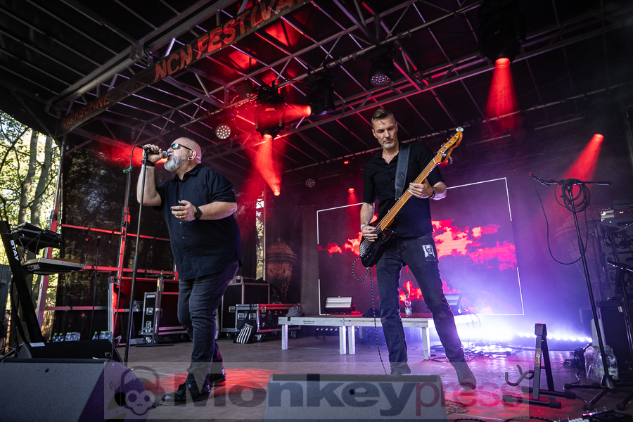 Auf der Parkbühne folgte anschließend die niederländische Band Bragolin. Einflüsse aus Post-Punk und Darkwave der letzten Jahrzehnte prägen den Sound des Projekts von Edwin van der Velde. Geschickt kombiniert die Band nostalgischen Synthesizer-Sound mit innovativen Gitarrenriffs. Bragolin zog eine Vielzahl von Zuschauern in ihren Bann und ließ sie vor der Bühne verweilen. Parallel spielte auf der Waldbühne das belgische EBM-Projekt Signal Aout 42. Die Band veröffentlichte in ihrer mehr als 35-jährigen Bandgeschichte zahlreiche Alben. Ihre Musik vereint nostalgische elektronische Klänge mit dynamischen Rhythmen. Die energiegeladenen Beats sorgen für eine mitreißende Atmosphäre, die das Publikum zum Tanzen brachte.