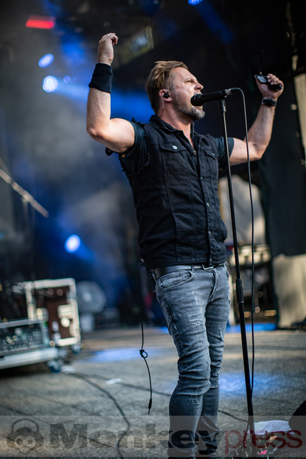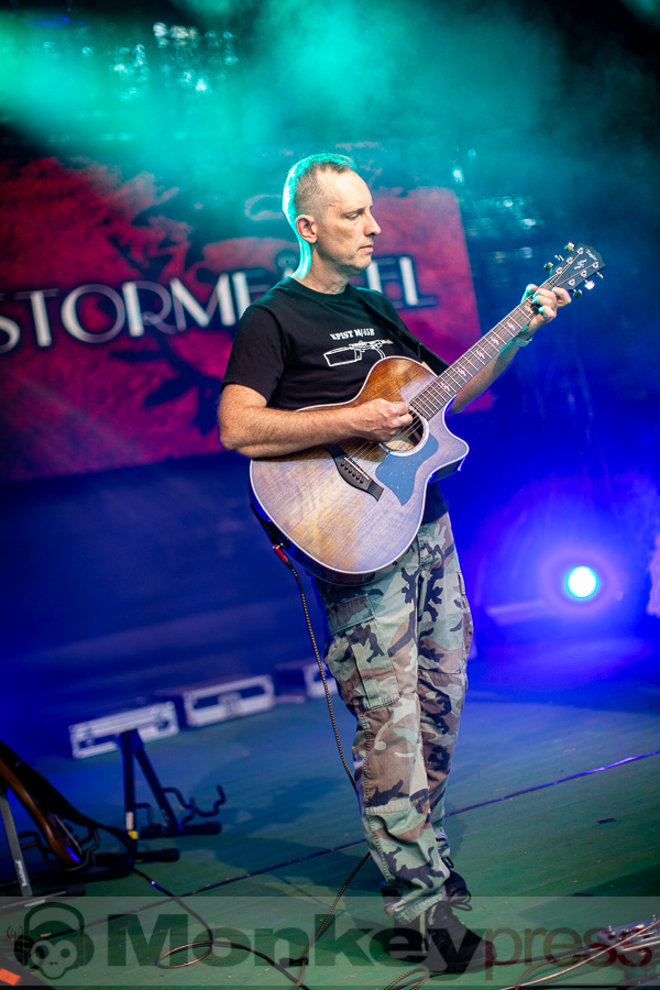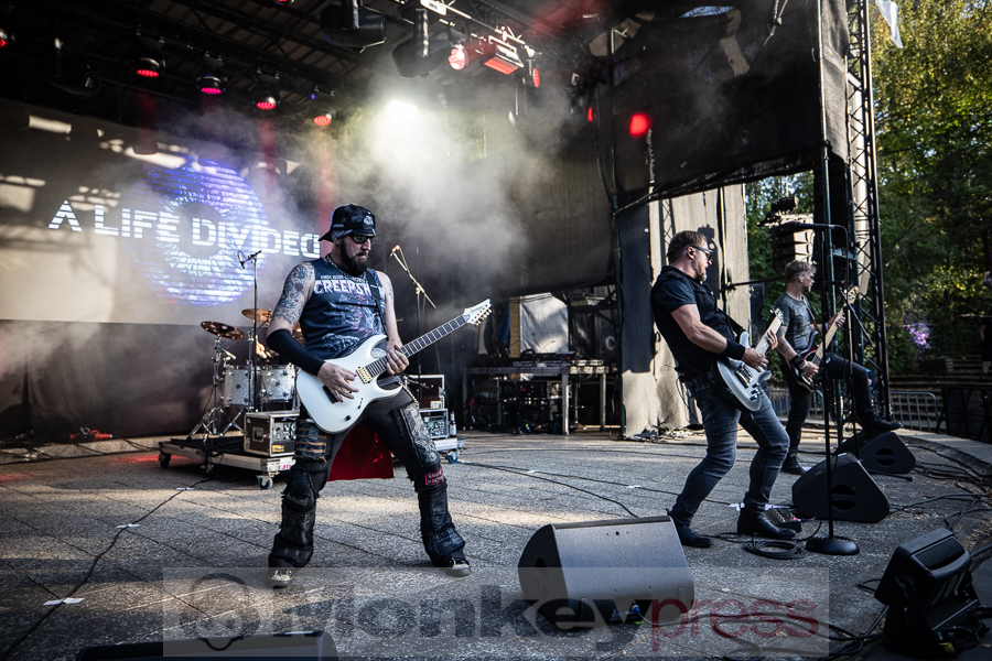 Um 17:30 Uhr ging es auf der Kulturbühne weiter mit Stormfågel. Das schwedische Neofolk-Projekt, welches nur selten in Deutschland auftritt, verwendet sowohl akustische als auch elektrische Gitarren. Der Stil der Band ist geprägt von düsteren, aber stimmungsvollen Melodien und tiefgründigen Lyrics. Gespannt warteten die Fans und wurden mit einer eindrucksvollen Show belohnt. Stilistisch anders ging es währenddessen mit der Elektro-Rock-Band A Life Divided auf der Amphibühne weiter. Die Band ist bereits seit über 20 Jahren aktiv und veröffentlichte letztes Jahr ein neues Album. Bei den Auftritten setzten sie primär auf die klassischen Rock-Instrumente. So schafft es die Band, ihre Fans sofort zu begeistern. Jetzt kamen viele Fans nah zur Bühne, um A Life Divided hautnah zu erleben.